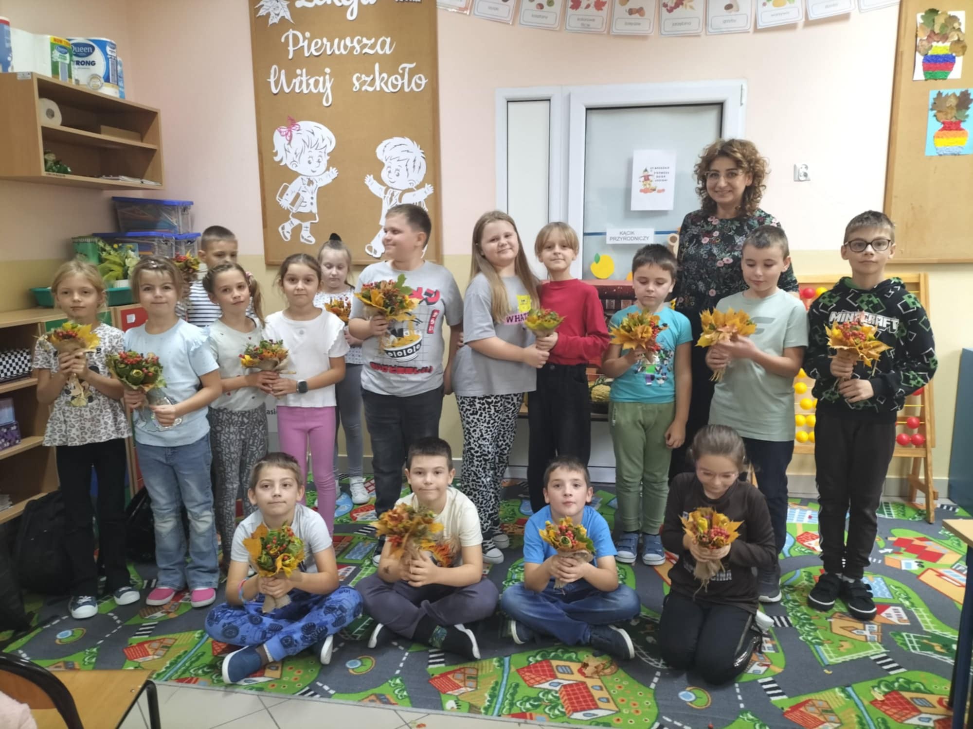 Dziś odwiedziłam 6-latków z Przedszkola w Michałowie. Tematem przewodnim była JESIEŃ.Jesień to pora roku, gdy liście na drzewach zmieniają kolor na czerwony,
