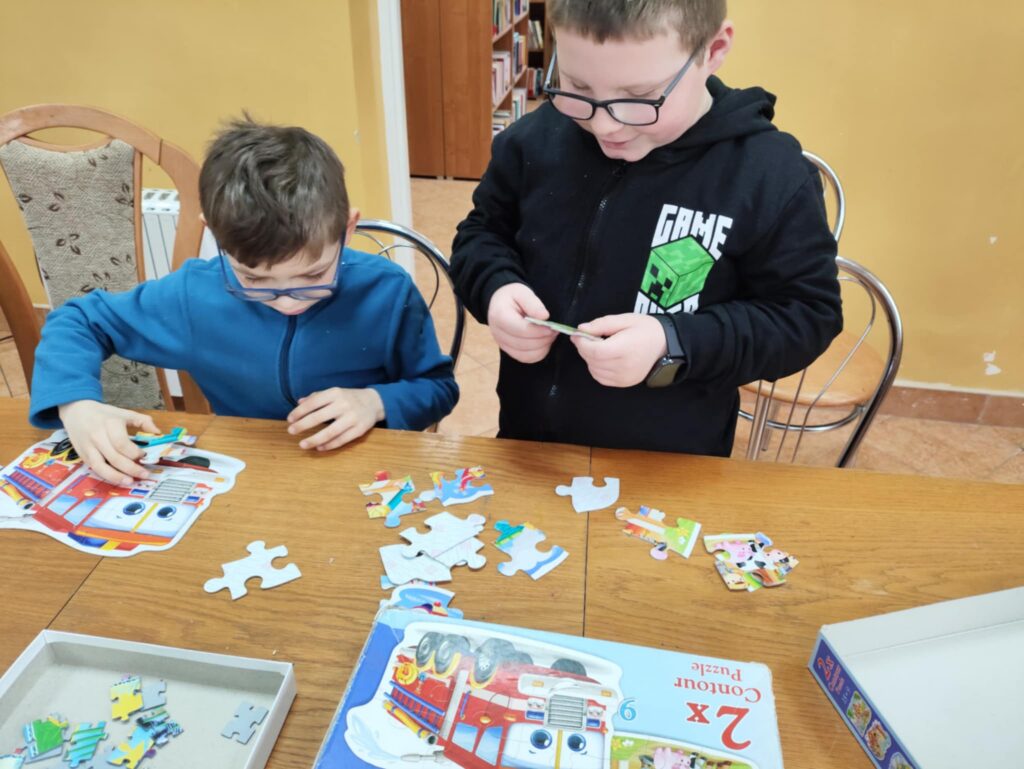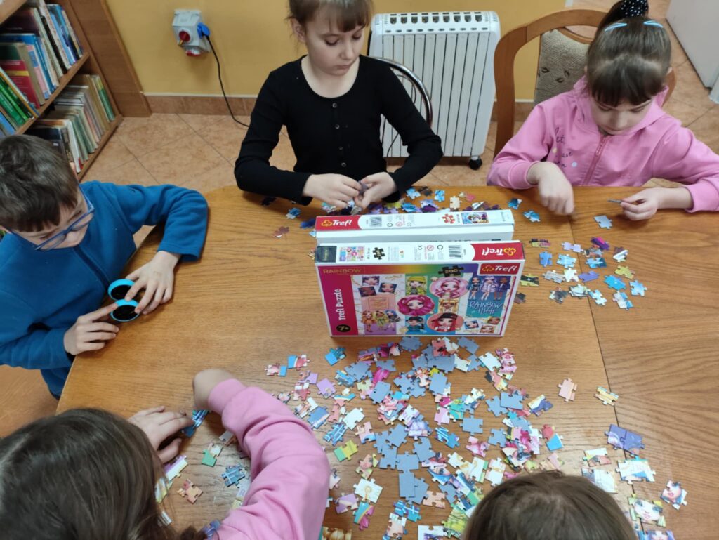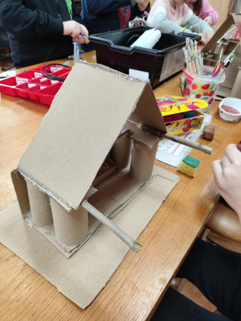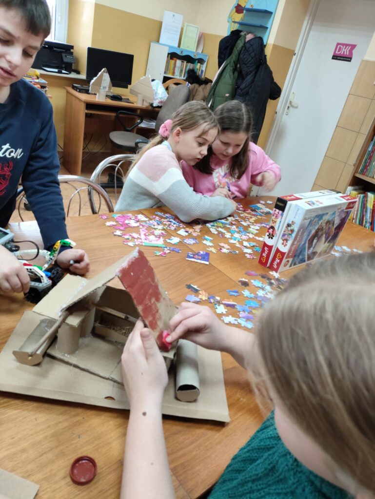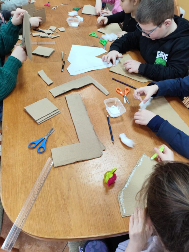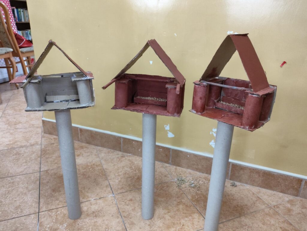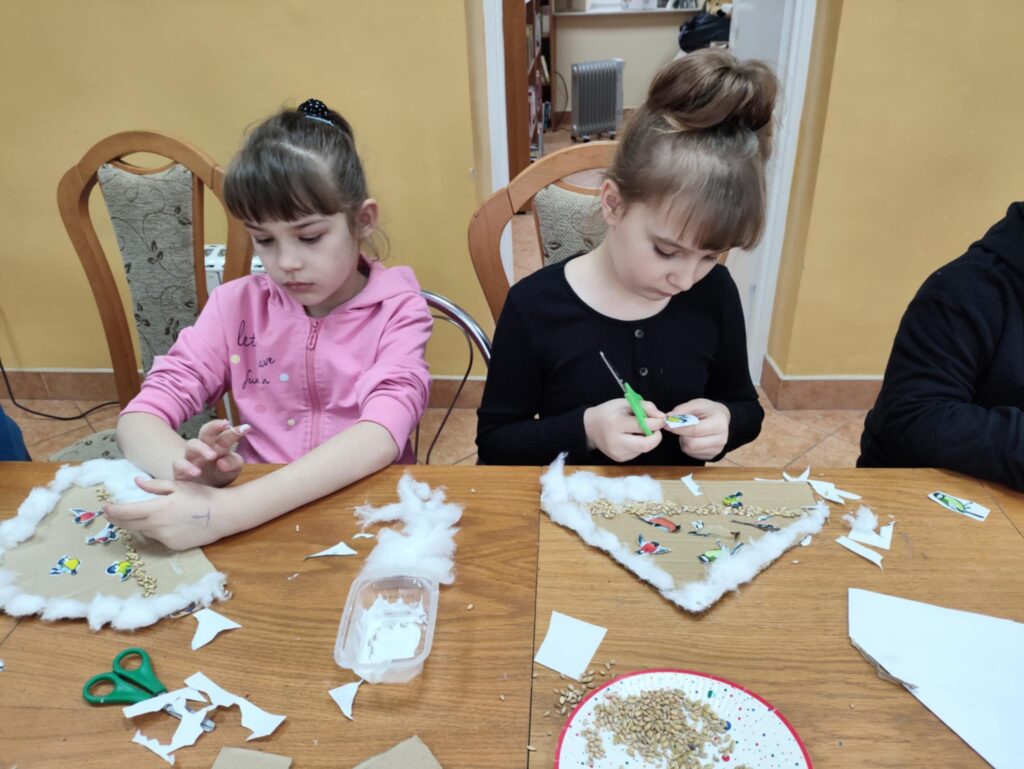 Kolejny dzień ferii w bibliotece upłynął pod znakiem ekologii i troski o naszych skrzydlatych przyjaciół. Tym razem dzieci wzięły udział w kreatywnych warsztatach, podczas których z przedmiotów codziennego użytku – rolek po papierze toaletowym i tektury – stworzyły pomysłowe, w pełni biodegradowalne karmniki.
