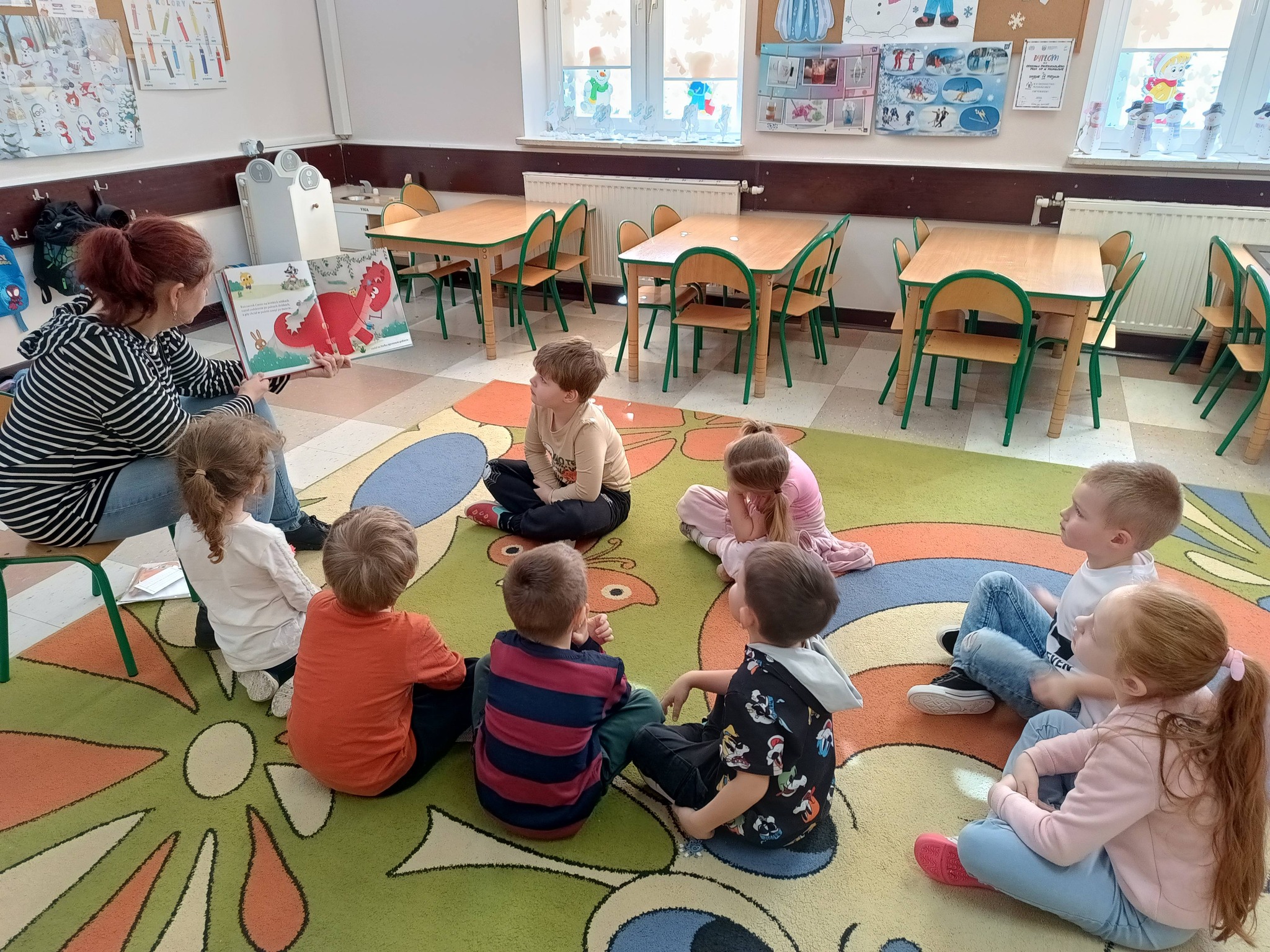 W grupie 3–4-latków w przedszkolu w Michałowie odbyły się zajęcia z cyklu Głośne czytanie w przedszkolu, zorganizowane z okazji Dnia Dinozaura. Dzieci