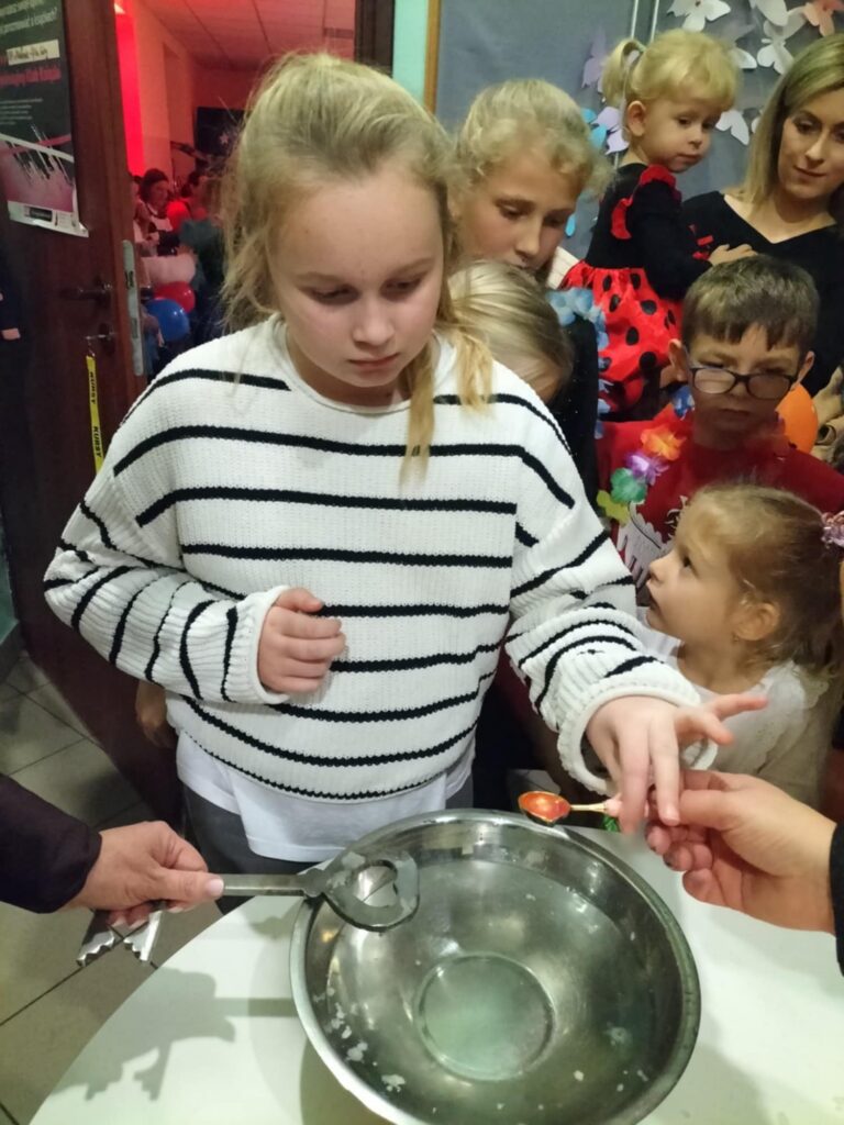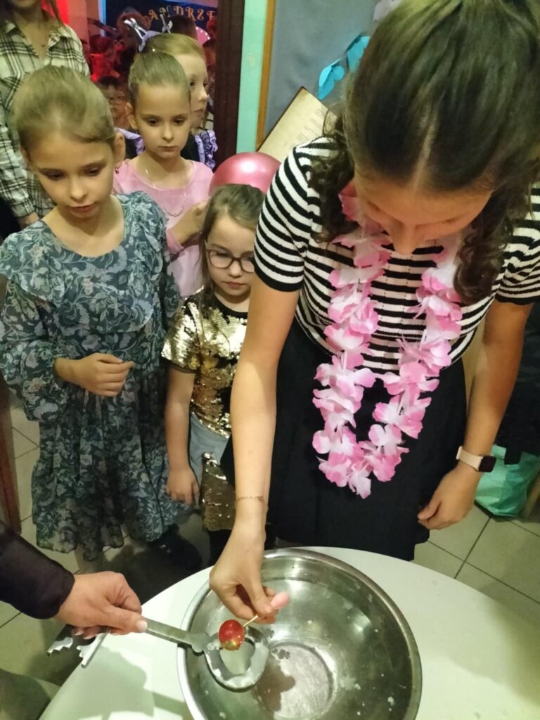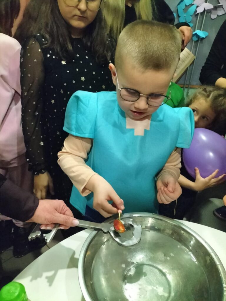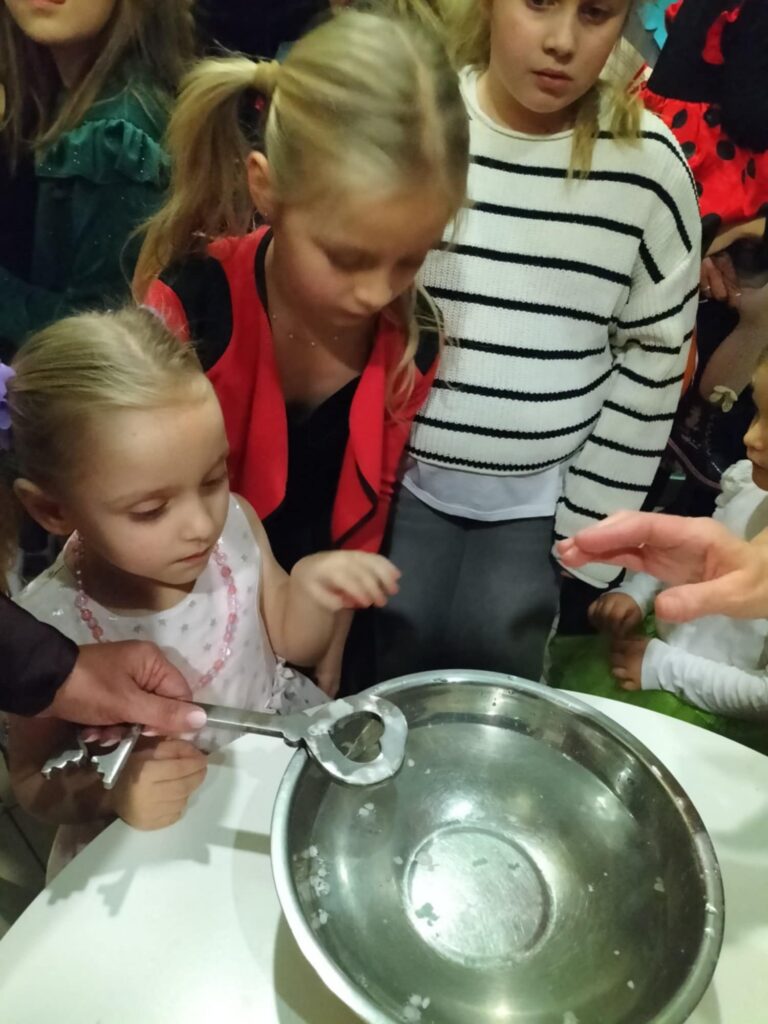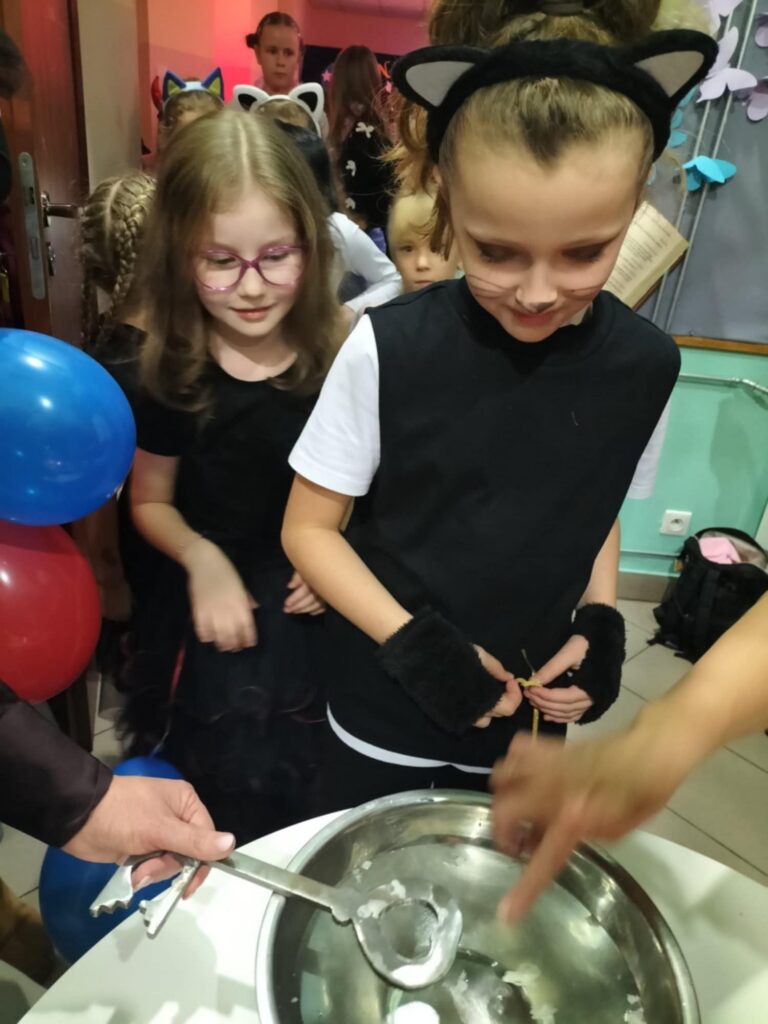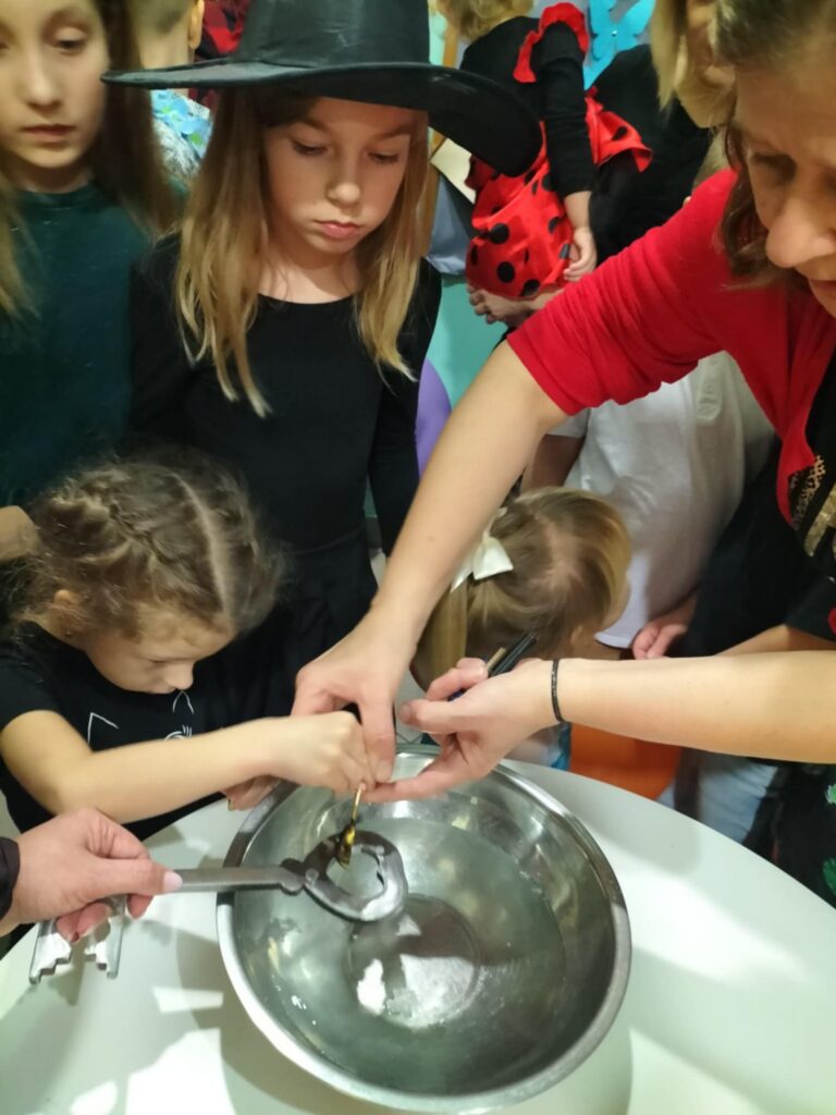 Część andrzejkowych atrakcji poprowadziły również panie z biblioteki. Przygotowały one tradycyjne wróżby — lanie wosku, wróżba z butami . Dzieci z zaciekawieniem odkrywały, co może przynieść im przyszłość, a każda wróżba wywoływała mnóstwo emocji. Uczestnicy mieli okazję nie tylko świetnie się bawić, ale także spędzić czas razem w bezpiecznej, przyjaznej atmosferze biblioteki.