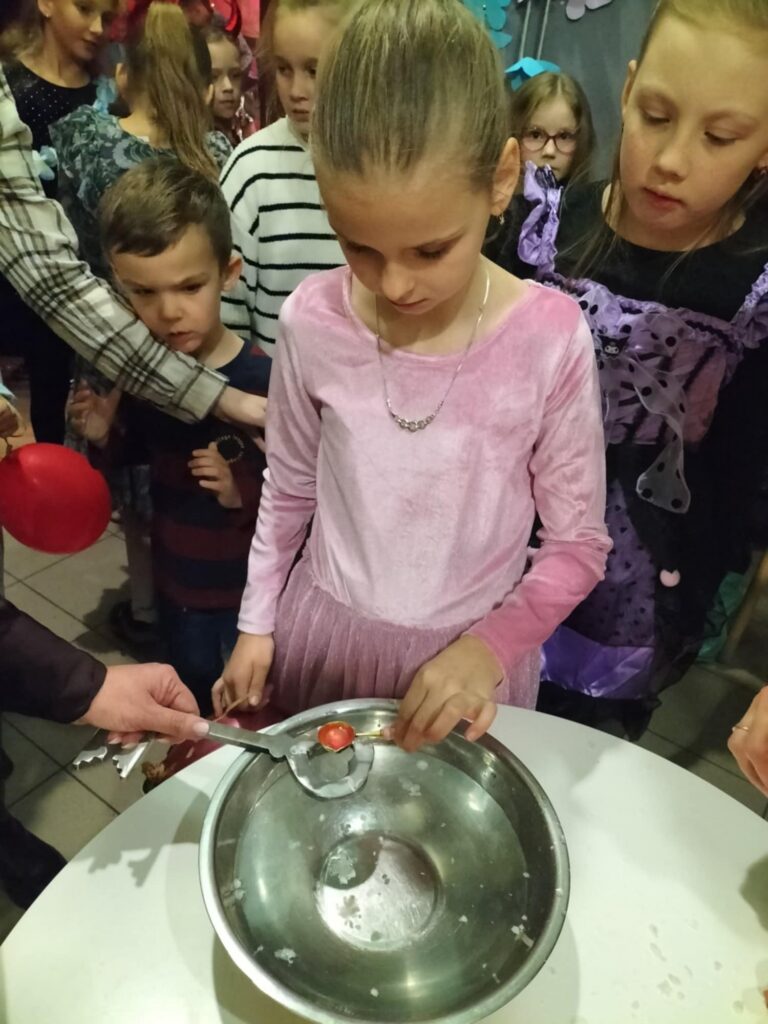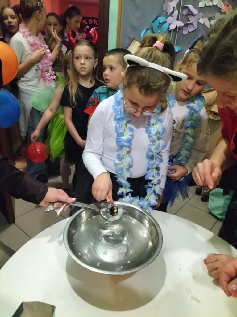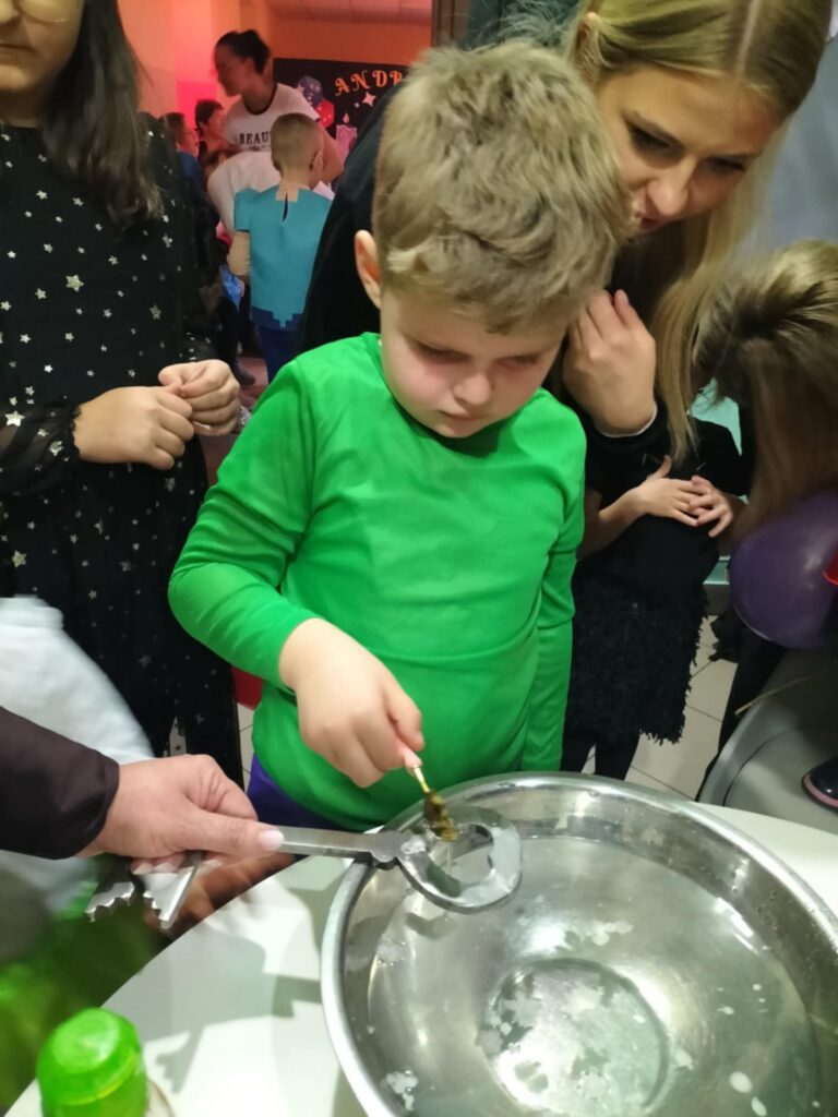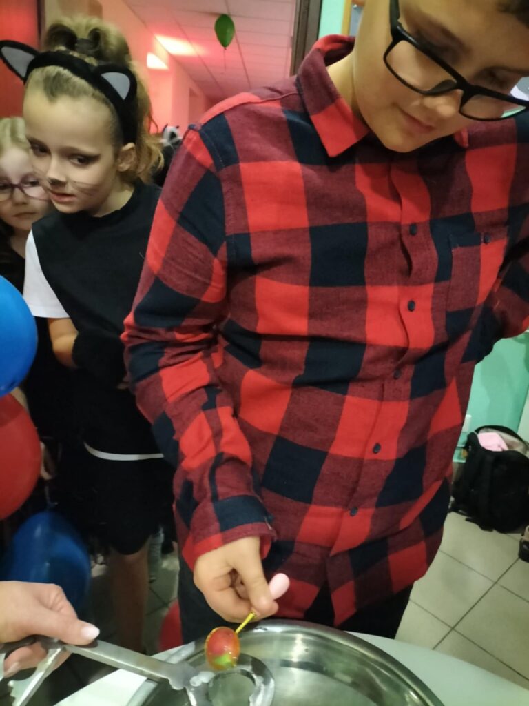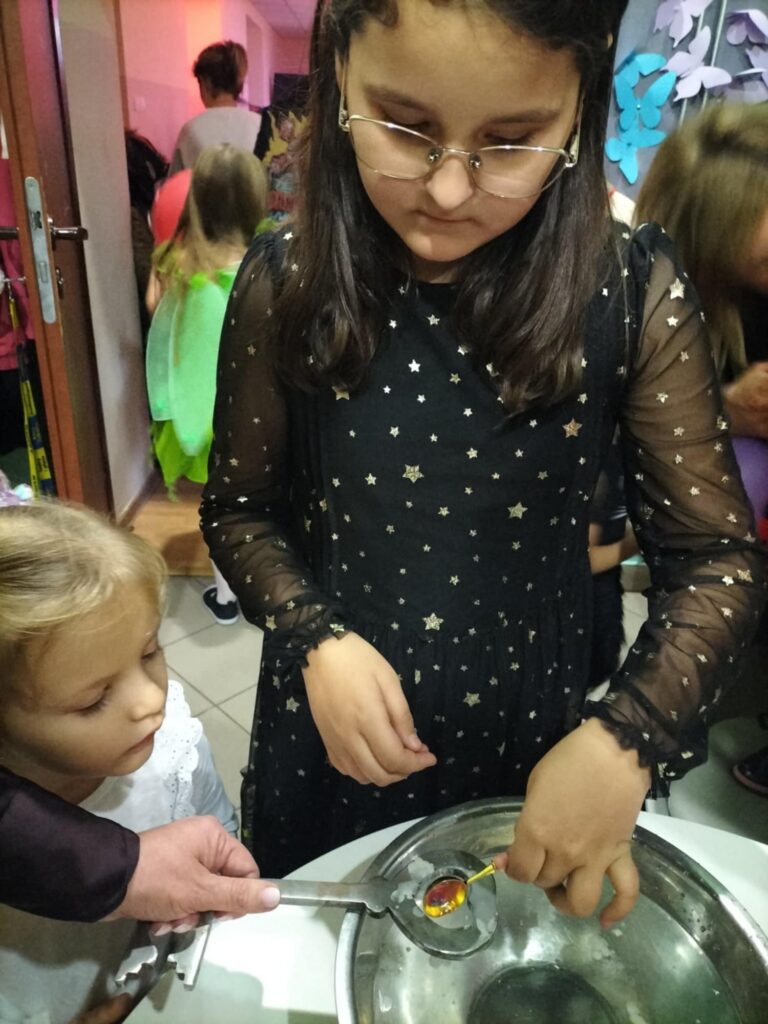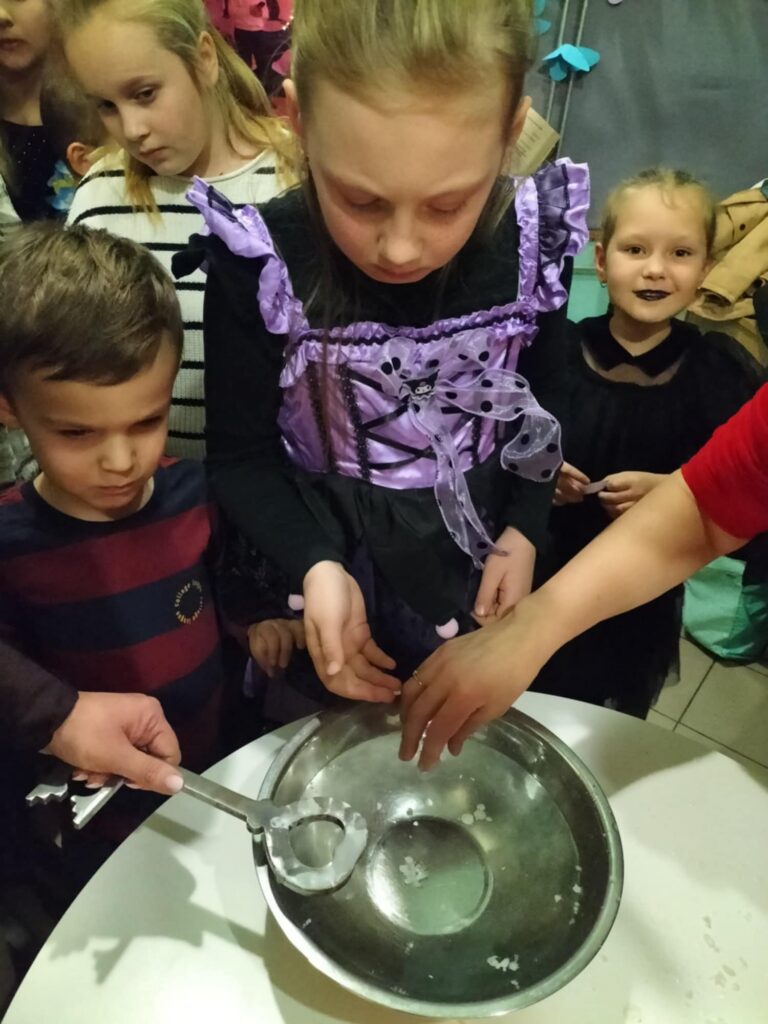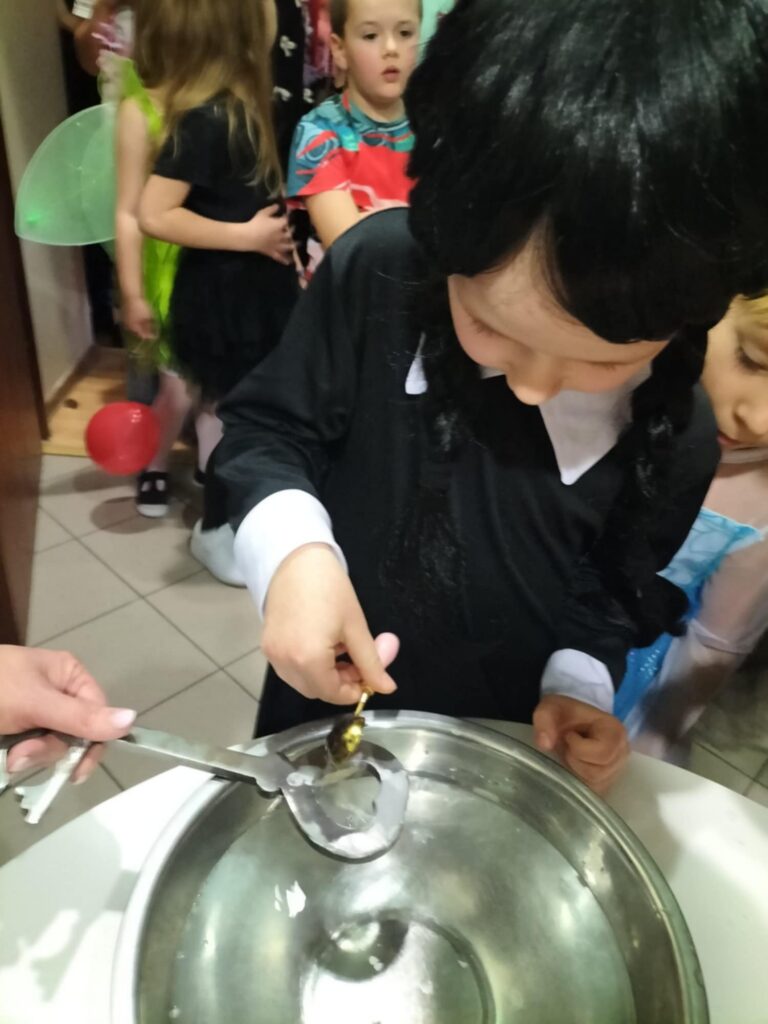 Część andrzejkowych atrakcji poprowadziły również panie z biblioteki. Przygotowały one tradycyjne wróżby — lanie wosku, wróżba z butami . Dzieci z zaciekawieniem odkrywały, co może przynieść im przyszłość, a każda wróżba wywoływała mnóstwo emocji. Uczestnicy mieli okazję nie tylko świetnie się bawić, ale także spędzić czas razem w bezpiecznej, przyjaznej atmosferze biblioteki.