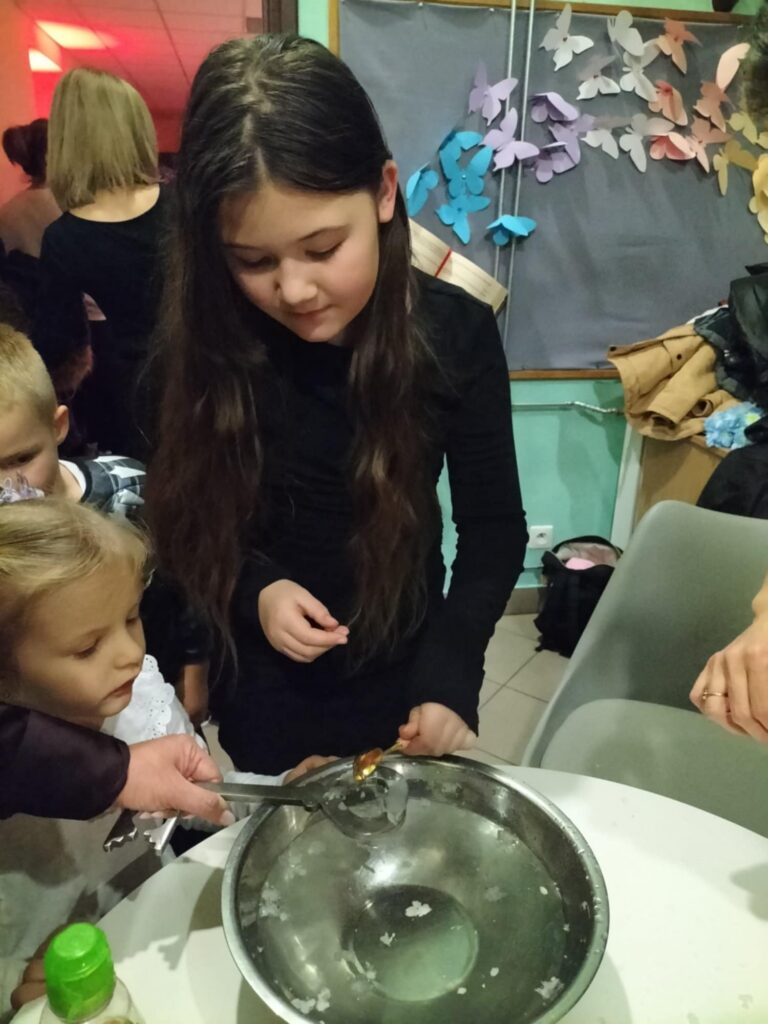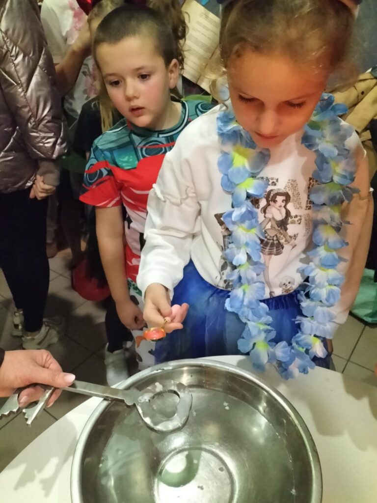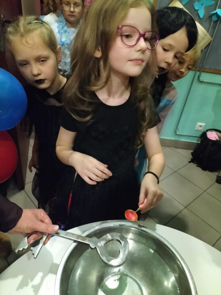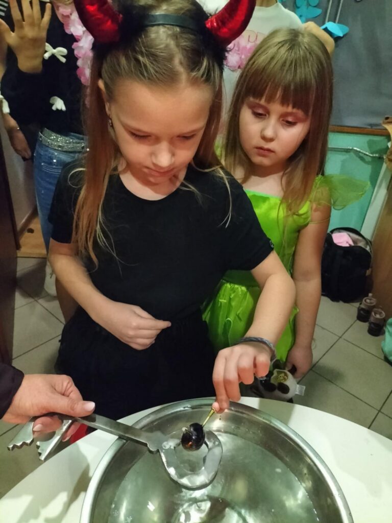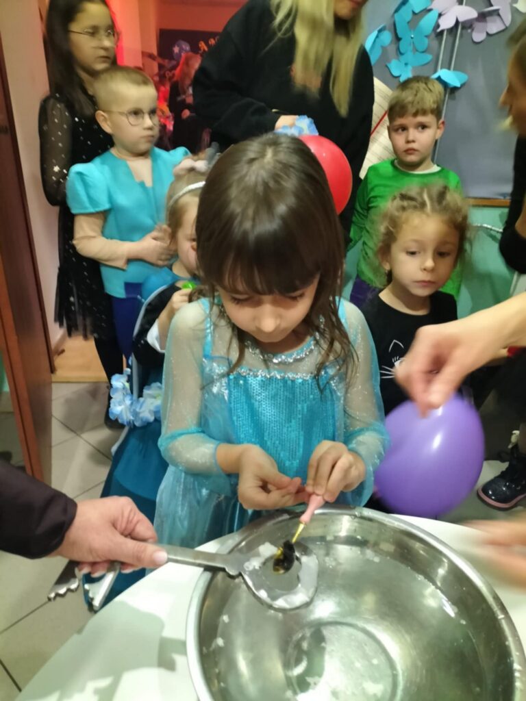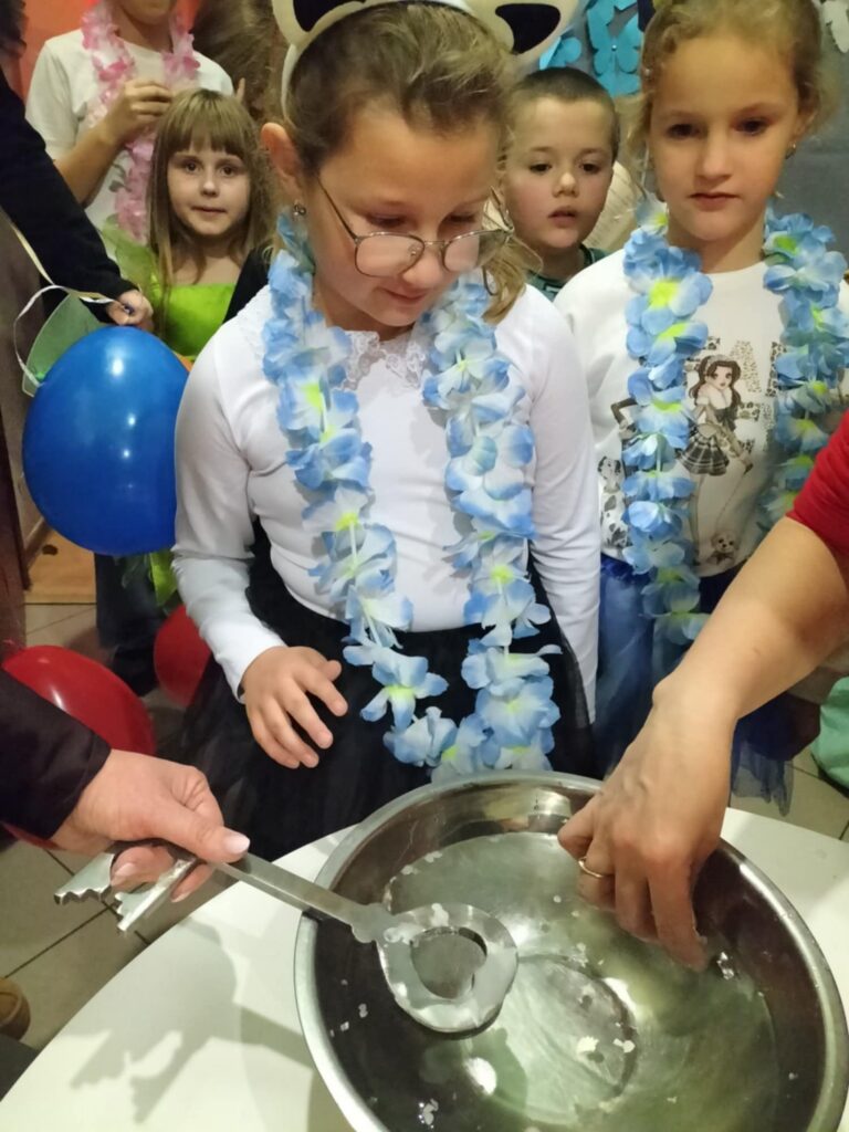 Część andrzejkowych atrakcji poprowadziły również panie z biblioteki. Przygotowały one tradycyjne wróżby — lanie wosku, wróżba z butami . Dzieci z zaciekawieniem odkrywały, co może przynieść im przyszłość, a każda wróżba wywoływała mnóstwo emocji. Uczestnicy mieli okazję nie tylko świetnie się bawić, ale także spędzić czas razem w bezpiecznej, przyjaznej atmosferze biblioteki.