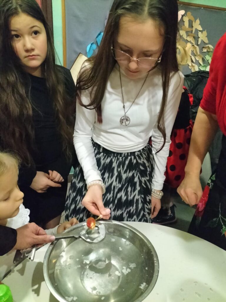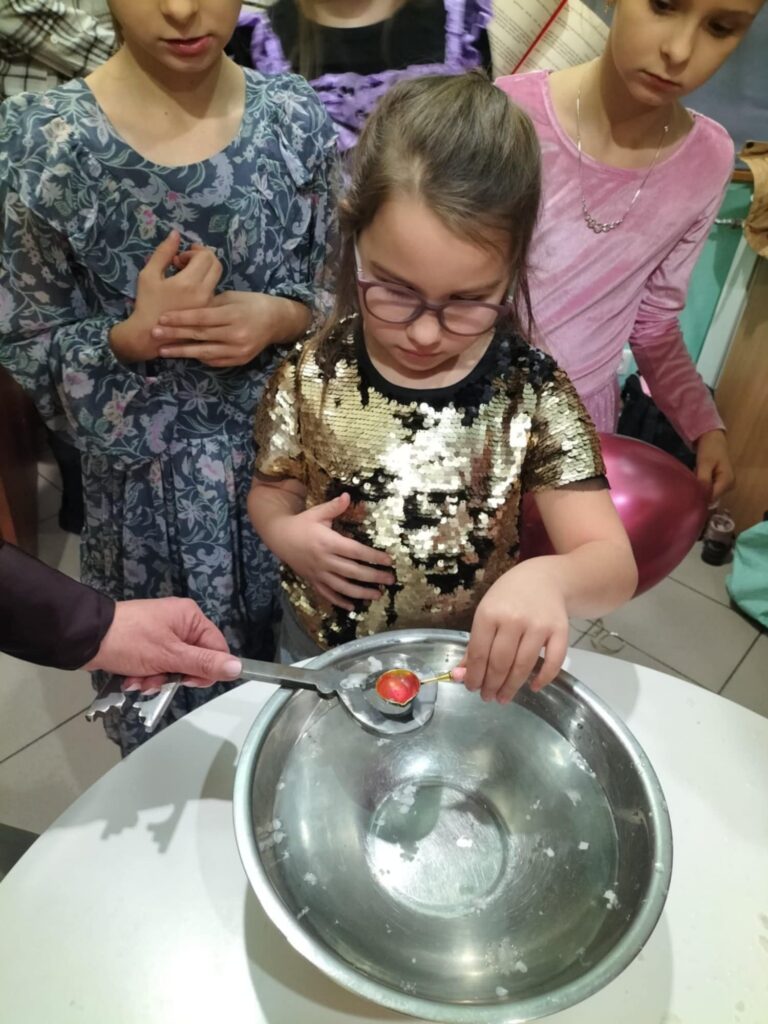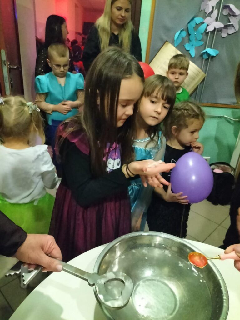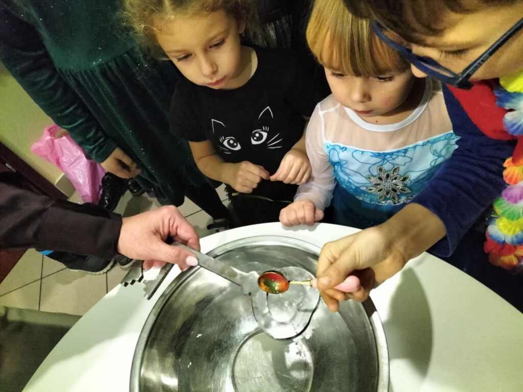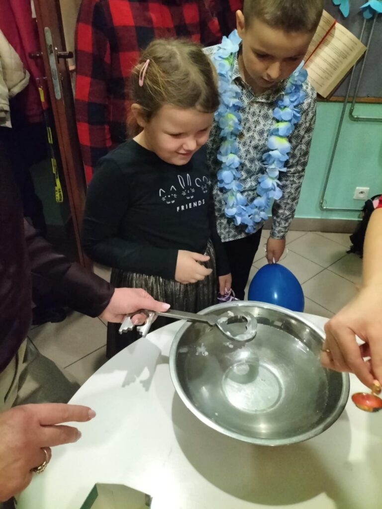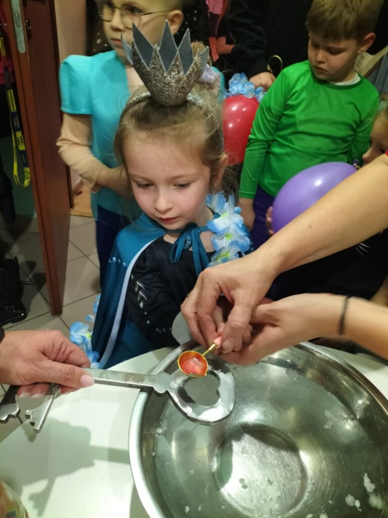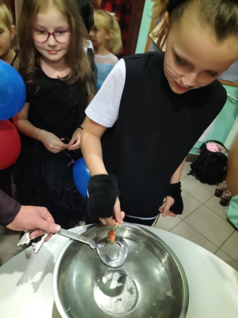 Część andrzejkowych atrakcji poprowadziły również panie z biblioteki. Przygotowały one tradycyjne wróżby — lanie wosku, wróżba z butami . Dzieci z zaciekawieniem odkrywały, co może przynieść im przyszłość, a każda wróżba wywoływała mnóstwo emocji. Uczestnicy mieli okazję nie tylko świetnie się bawić, ale także spędzić czas razem w bezpiecznej, przyjaznej atmosferze biblioteki.