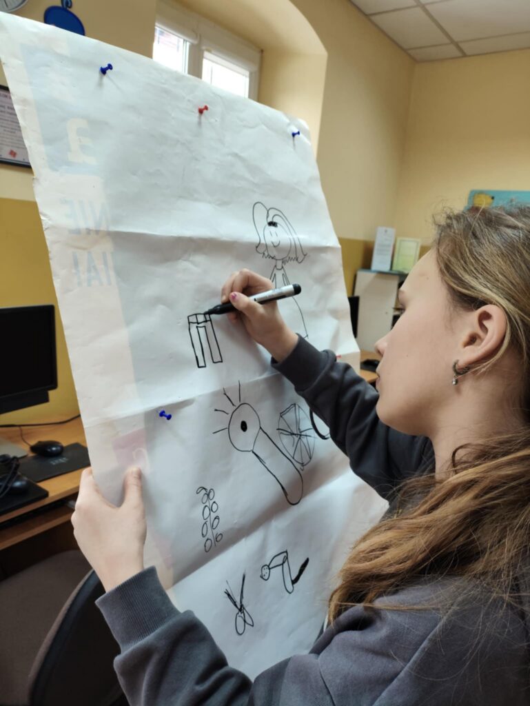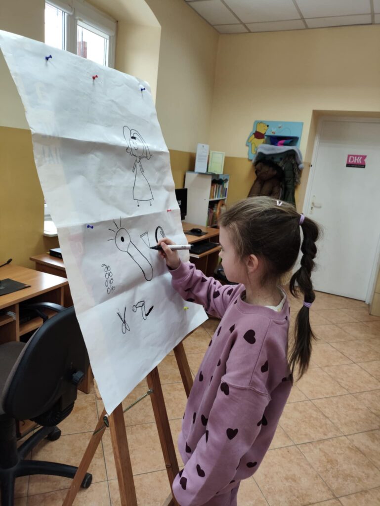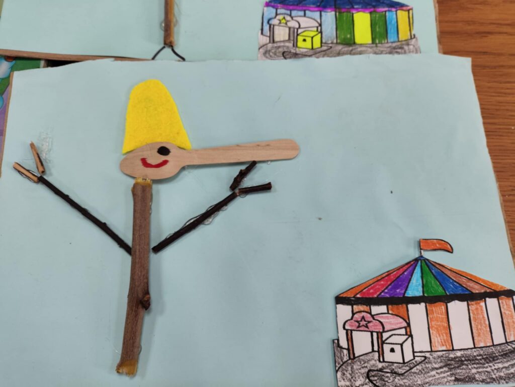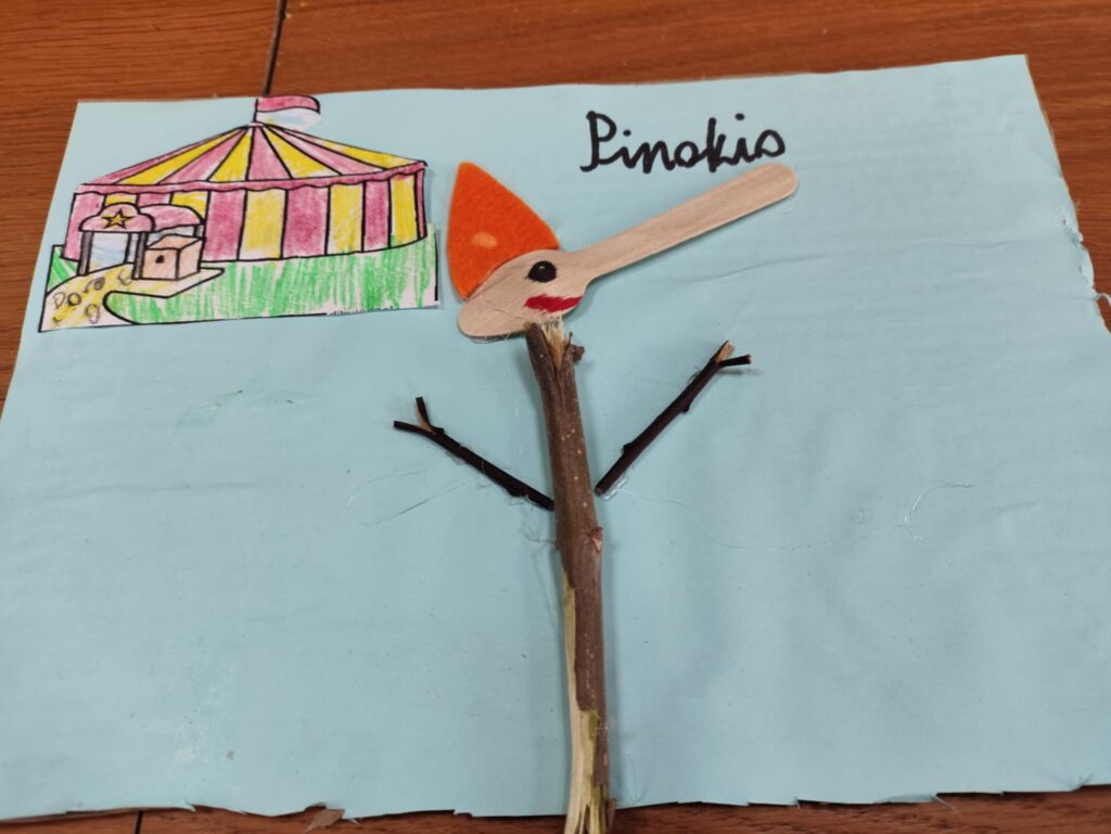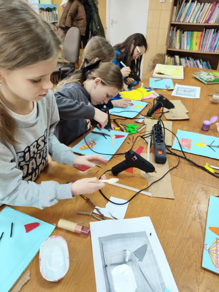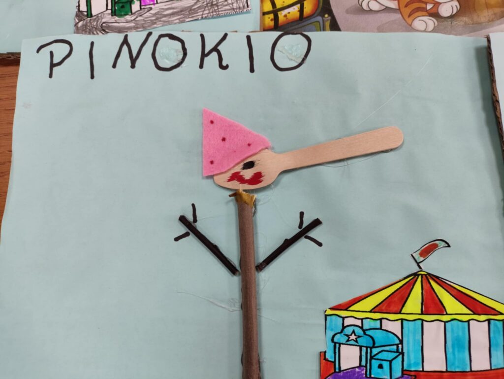 Drugi tydzień ferii w bibliotece to czas, kiedy zimowa aura spotyka się z ciepłem literackich przygód. Spotkanie rozpoczęliśmy od wspólnego czytania przygód Pinokia. Był też czas, na rozmowy o tym, że „kłamstwo ma krótkie nogi, ale długi nos”. Zainspirowani historią Dżepetta, mali artyści stworzyli własne wizerunki pajacyka, wykorzystując różnorodne techniki. Tym razem Eko- Pinokio wykonany z drewnianych łyżeczek, gałązek i filcu. To oryginalny sposób na wykorzystanie materiałów z recyklingu. Po części plastycznej przyszedł czas na ruch i śmiech. W bibliotece zrobiło się naprawdę głośno i wesoło, bo kalambury to moment, w którym literacka klasyka zamieniła się w czyste emocje!
