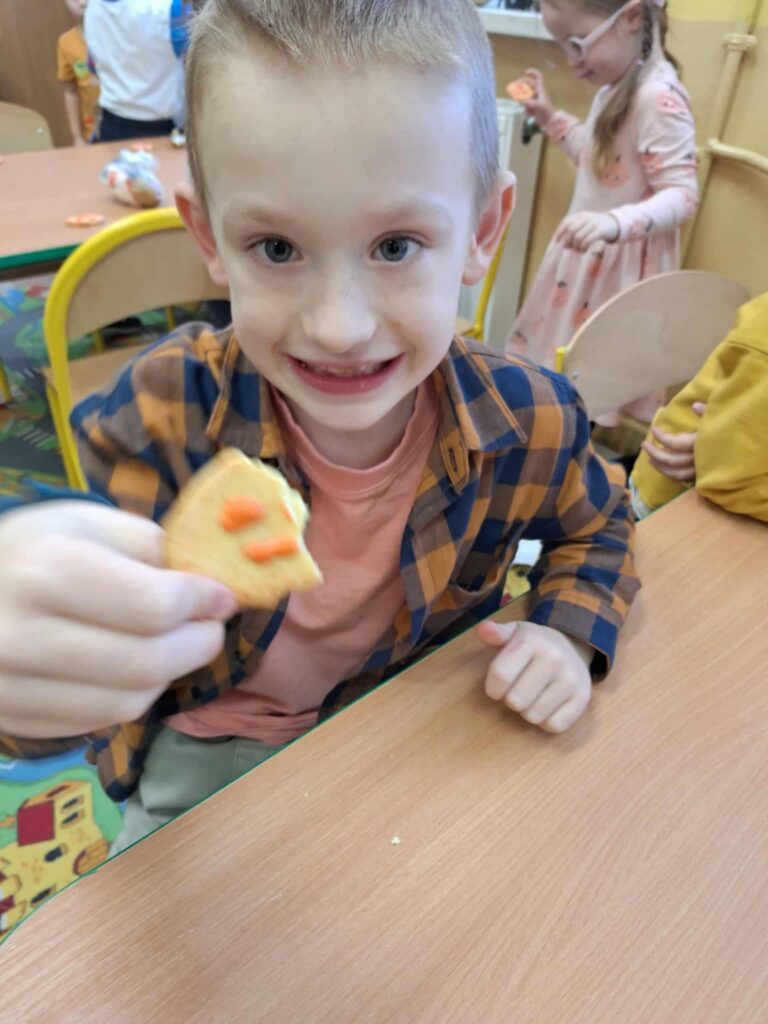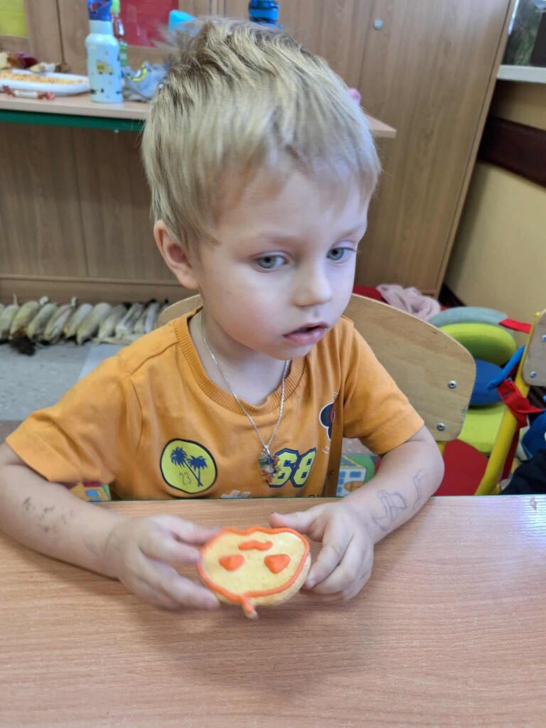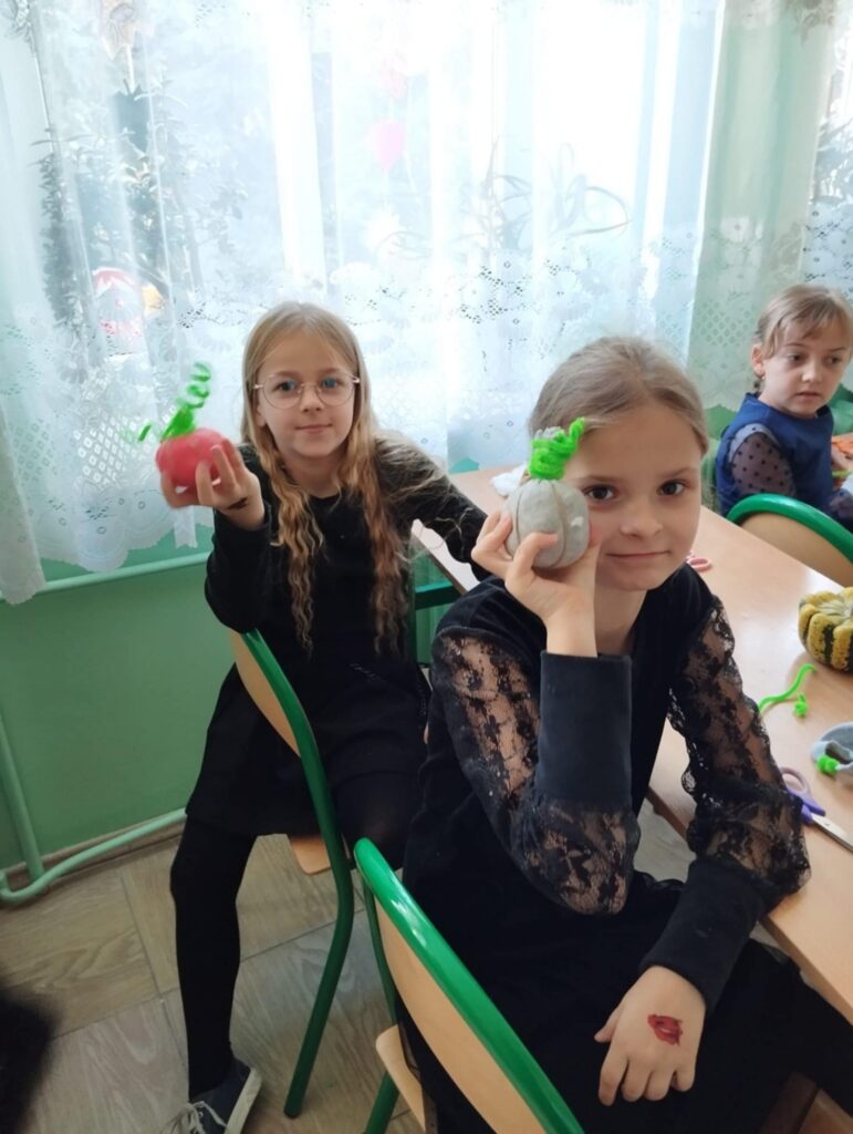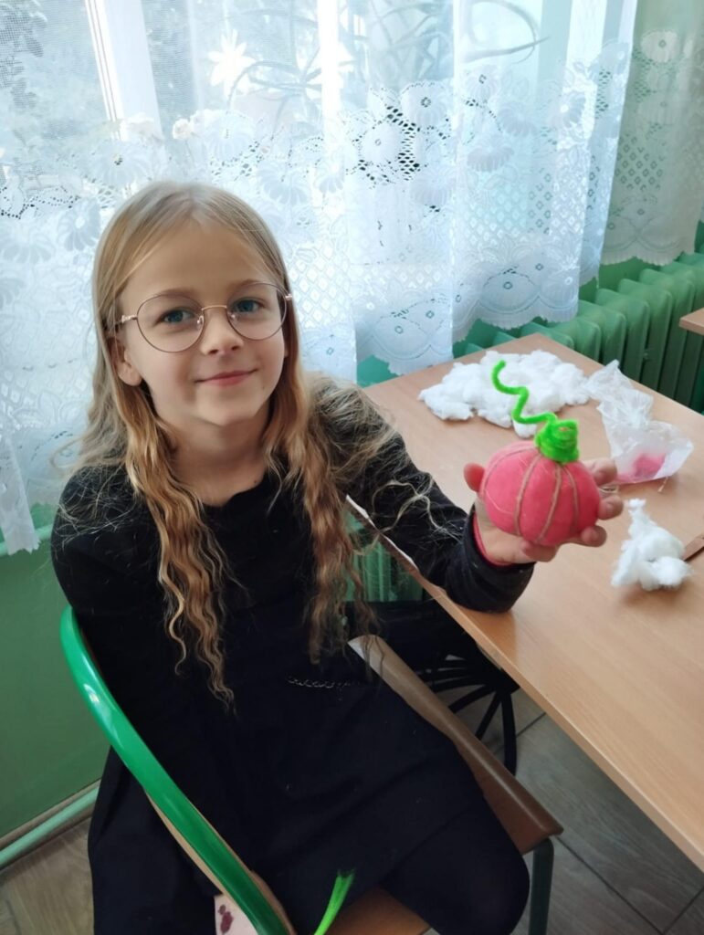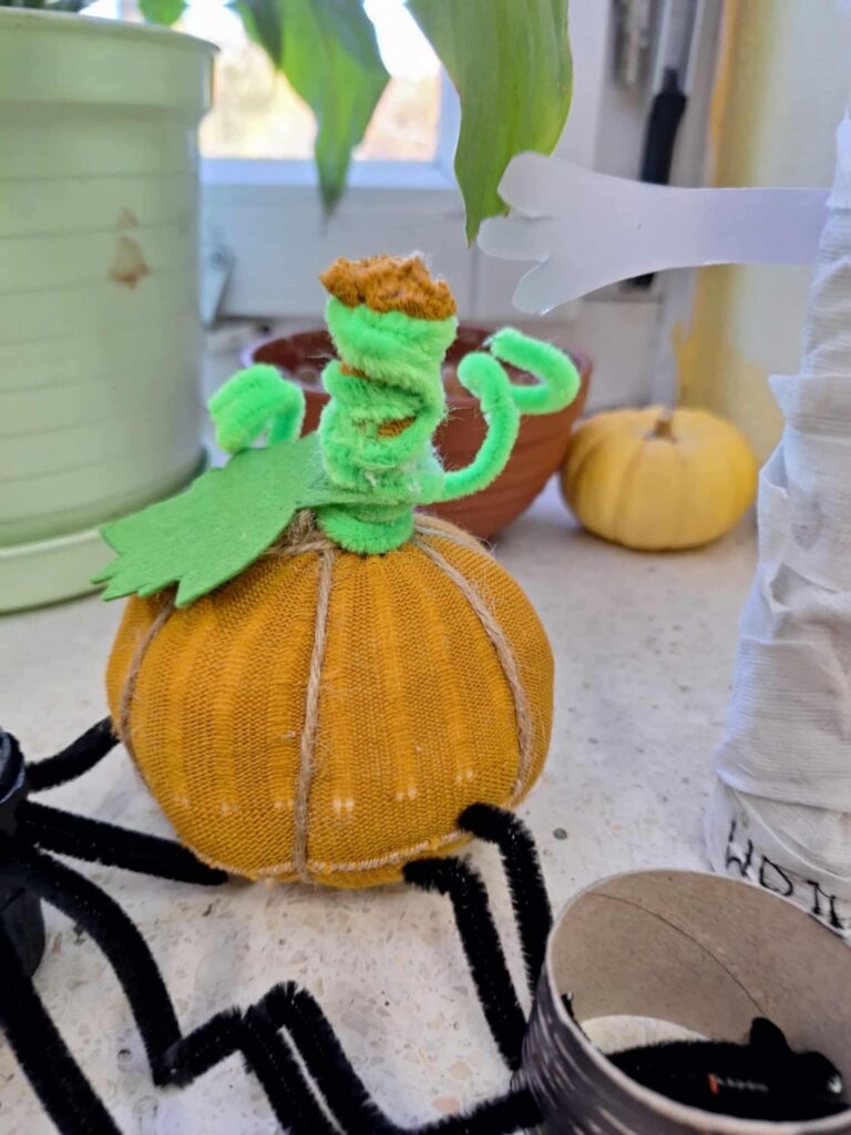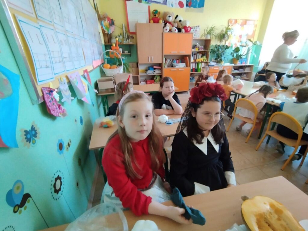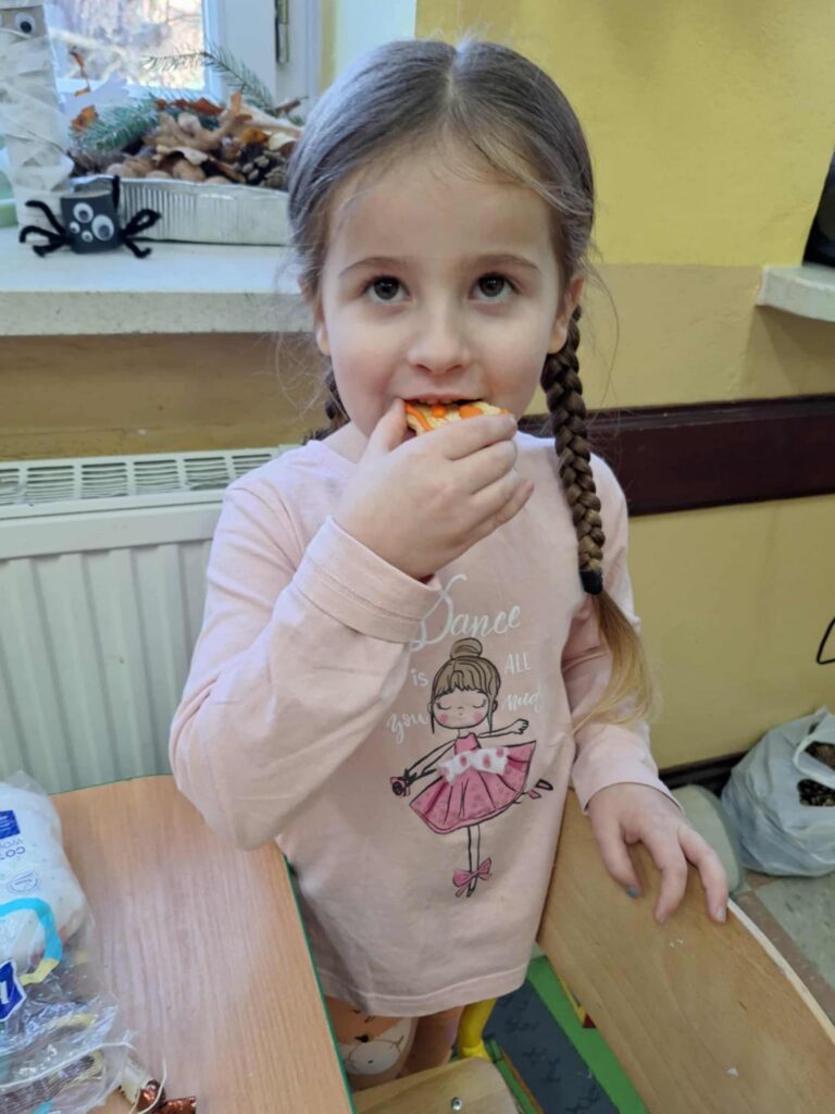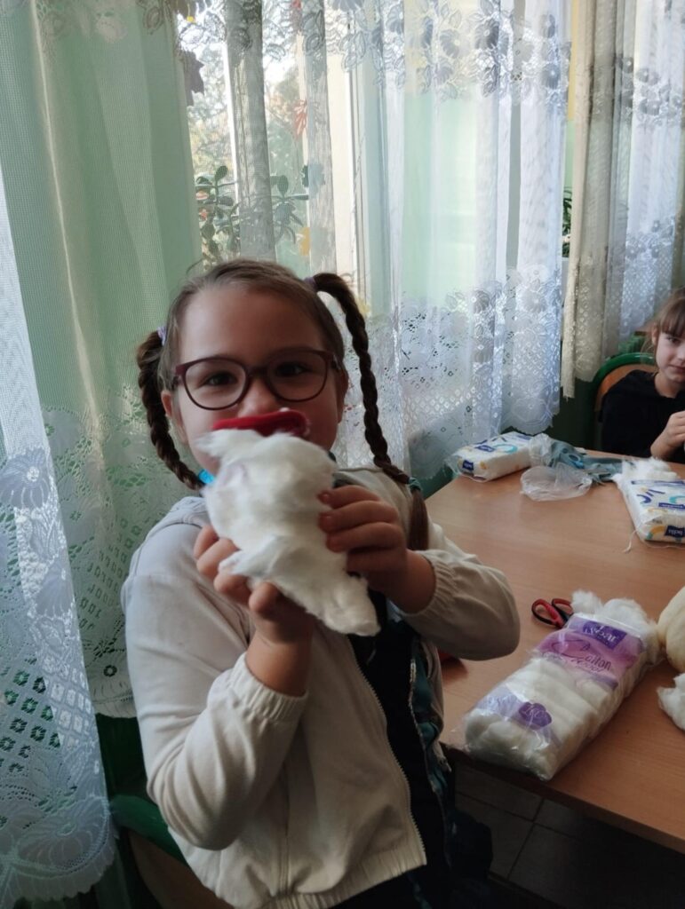 Jednym z najbardziej wyczekiwanych punktów było wykonanie własnej, oryginalnej dyni z skarpetki i waty. Dzieci z radością brały udział w tym kreatywnym warsztacie. Najpierw wybierały kolorową skarpetkę, którą następnie wypełniały miękką watą, tworząc kształt dyni. Na końcu dodawały ozdoby – liście , wąs czepny itp. Efektem końcowym były urocze, własnoręcznie wykonane dynie, które dzieci zabrały do domu jako pamiątkę tego wyjątkowego dnia.