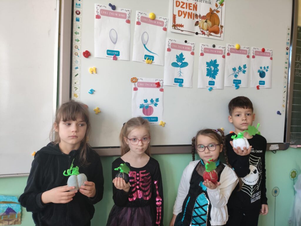 Podczas wydarzenia dzieci mogły podziwiać różnorodne dynie – od małych, po gigantyczne, ozdobne i jadalne. Opowiadaliśmy im ciekawe historie o tym, skąd dynie się biorą, jak są zbudowane , omówiliśmy cykl ich rozwoju oraz jak są wykorzystane w kuchni.