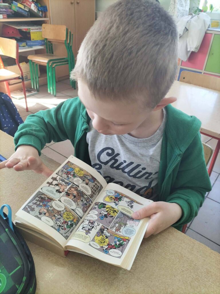 Na zakończenie wszystkie prace zostały połączone w jedną, wspólną książkę o klasie drugiej. Powstało wyjątkowe dzieło, które nie tylko utrwaliło wiedzę zdobytą podczas zajęć, ale także stało się pamiątką wspólnej pracy i kreatywności uczniów. Zajęcia przebiegły w radosnej atmosferze, rozwijając zarówno zainteresowania czytelnicze, jak i umiejętność współpracy.