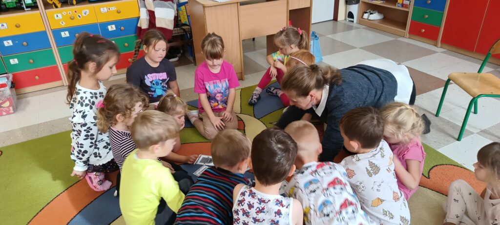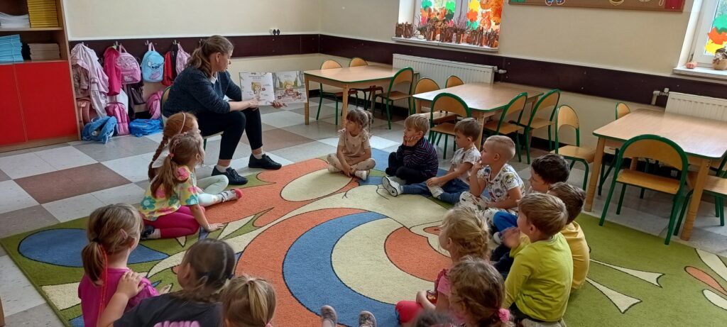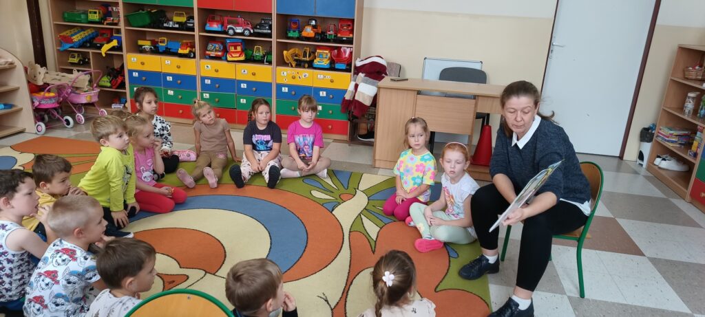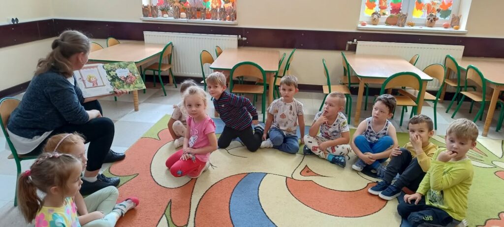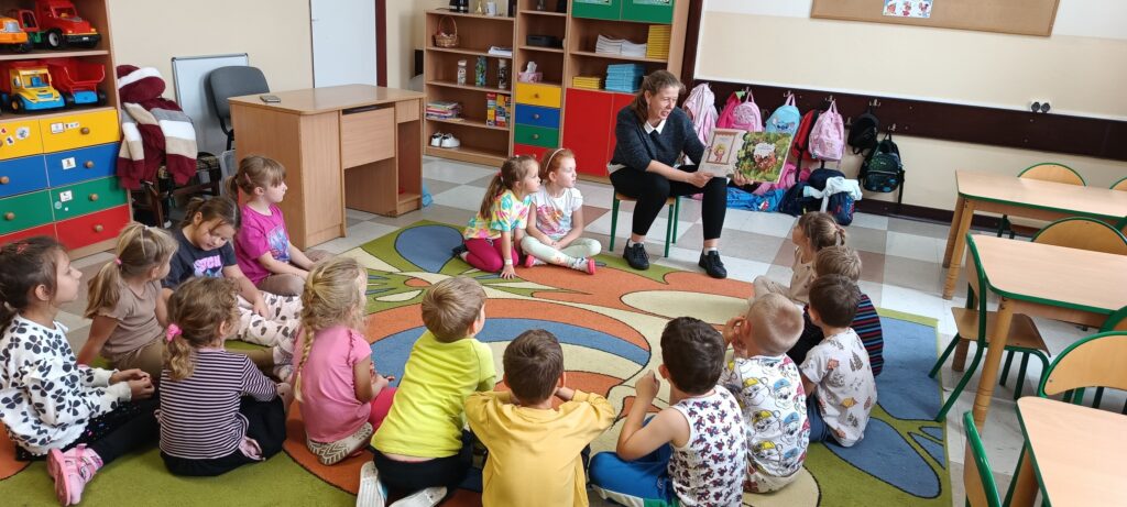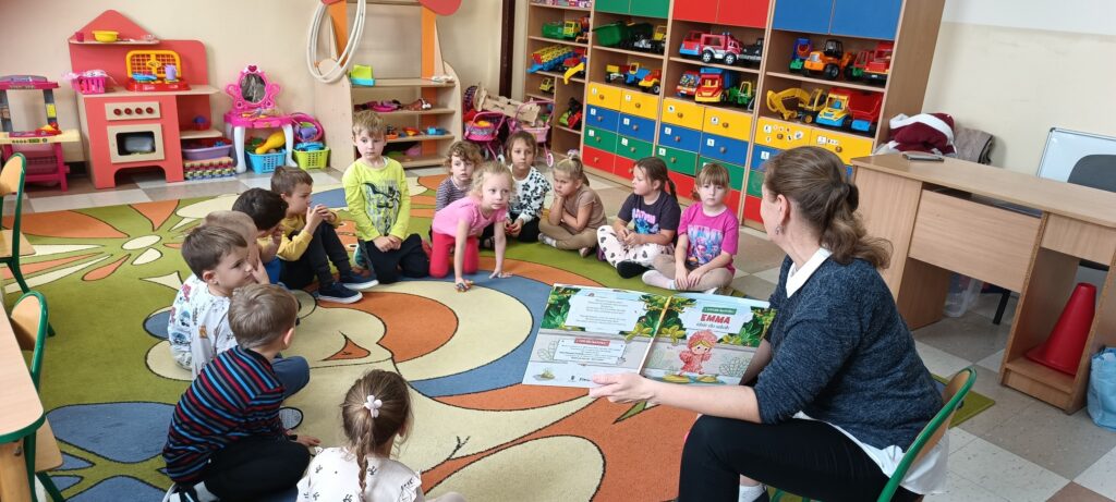 W dni wczorajszym odwiedziłam grupę 5 latków z przedszkola w Michałowie, dzieci wysłuchały książeczki pt. „Emma idzie do szkoły” jej autorem jest Federico van Lunter.