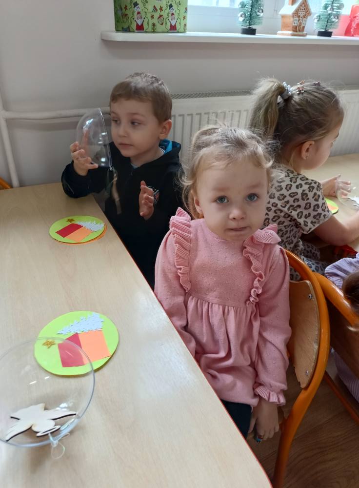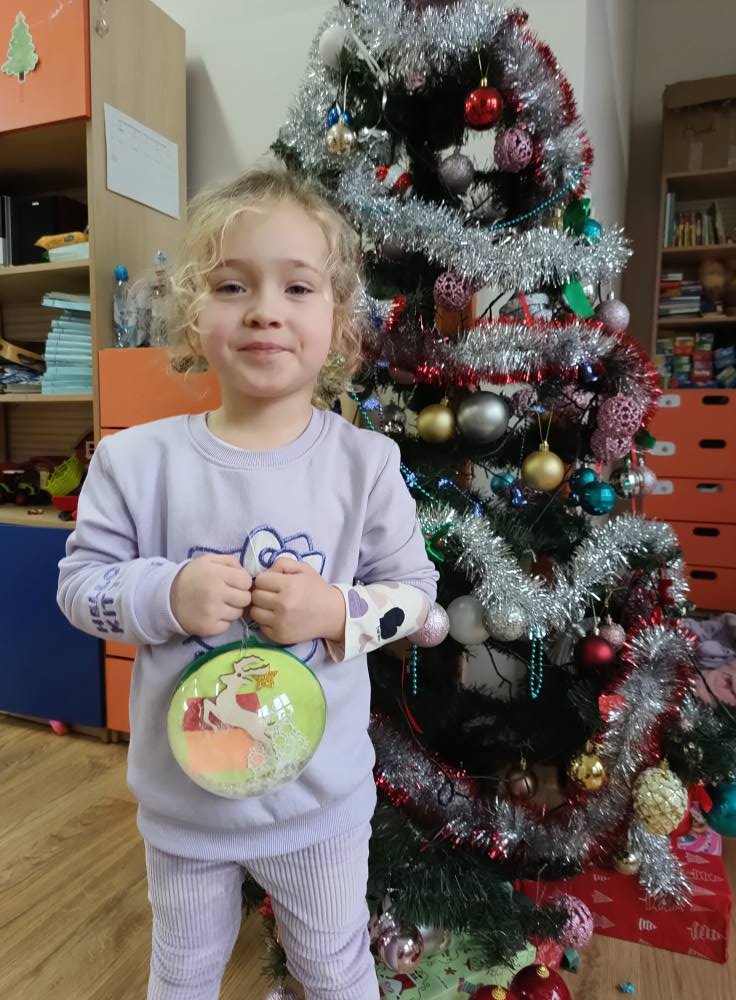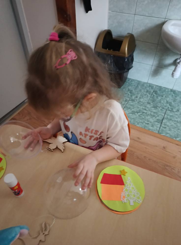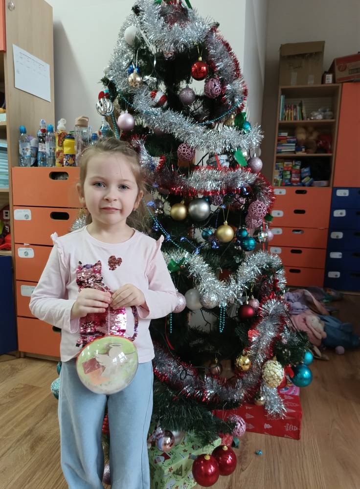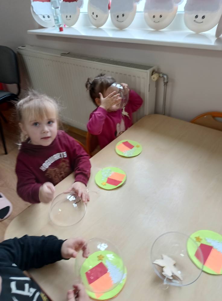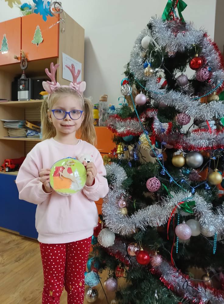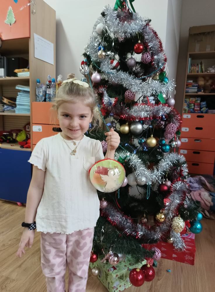 Jako pracę dzieci ozdobiły giga bombki akrylowe w których skakały sarenki lub fruwały aniołki. Pośród śnieżnego puchu i brokatu.