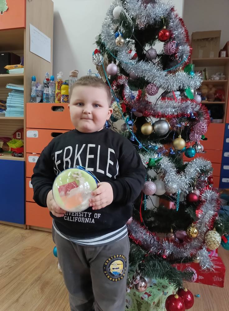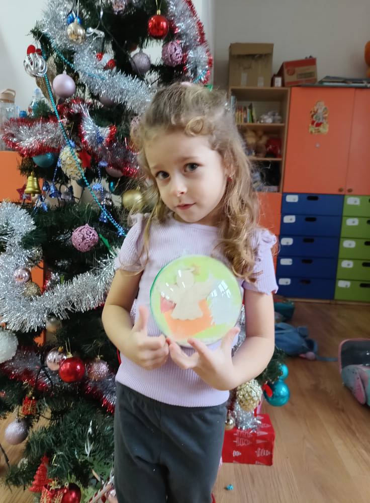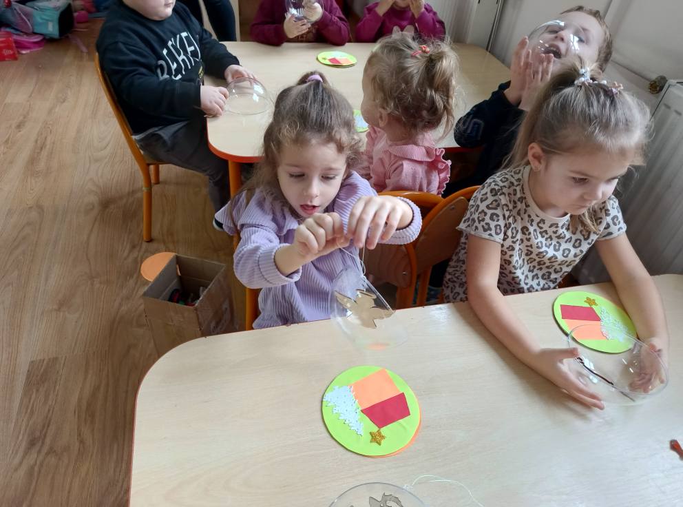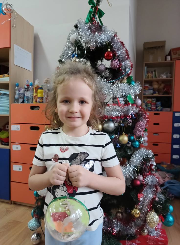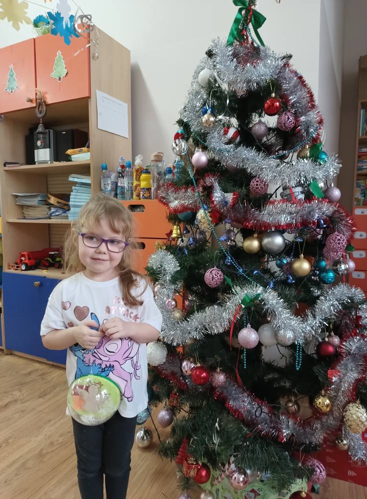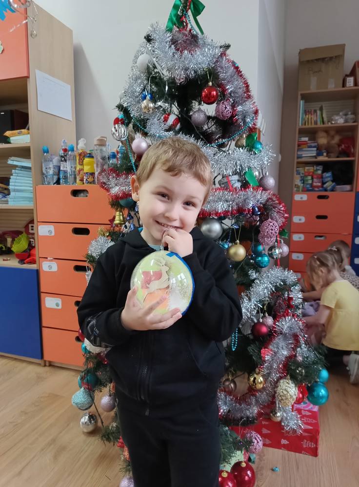 Jako pracę dzieci ozdobiły giga bombki akrylowe w których skakały sarenki lub fruwały aniołki. Pośród śnieżnego puchu i brokatu.