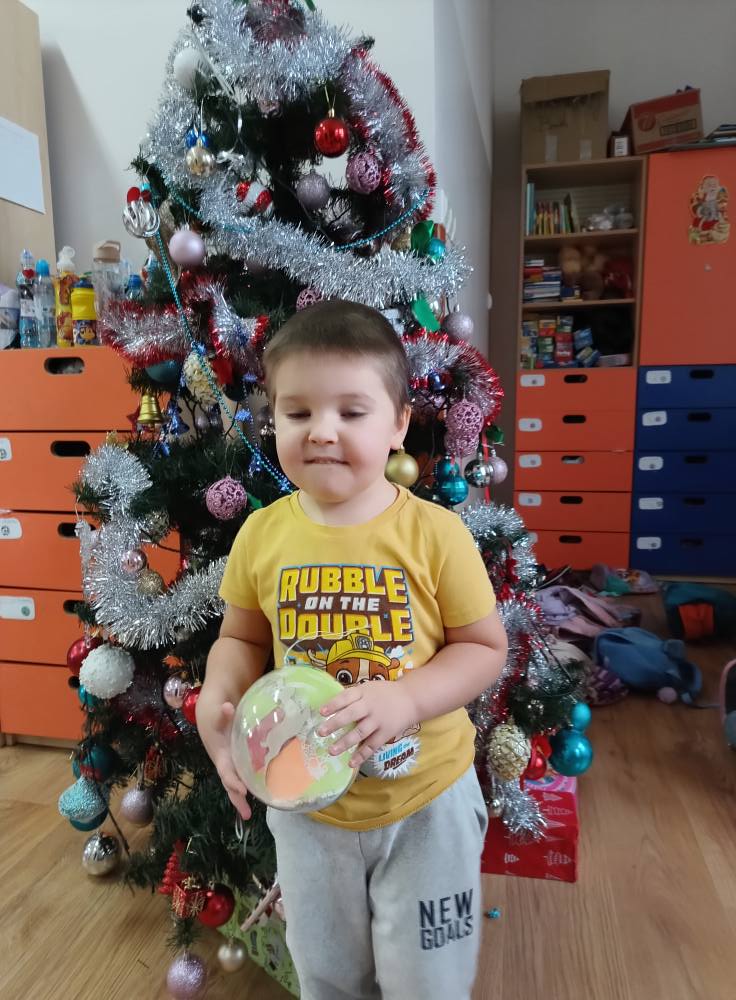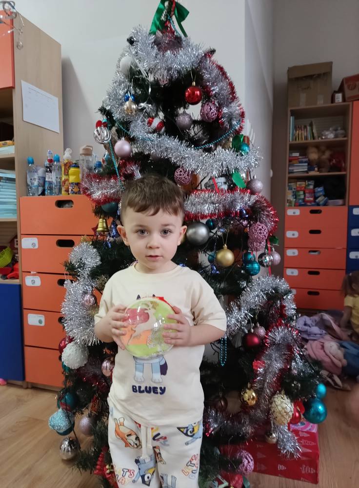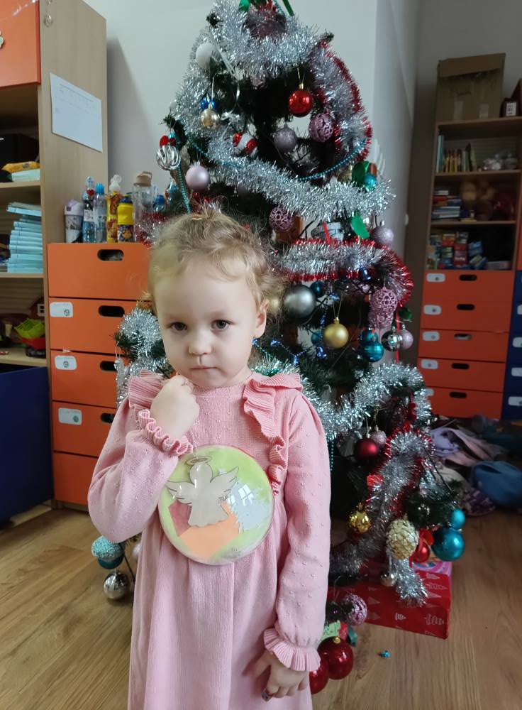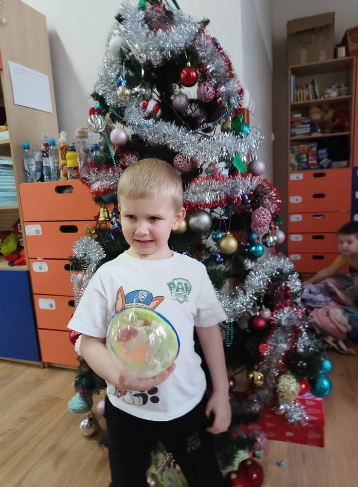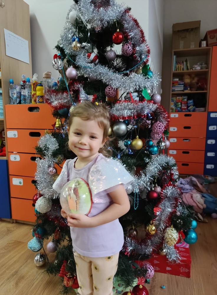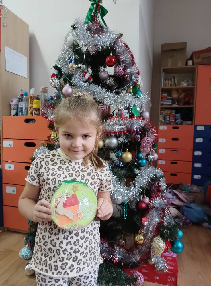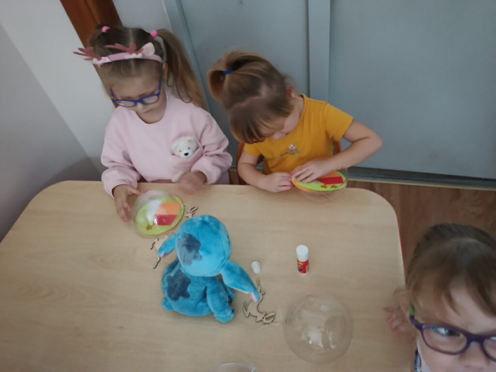 Jako pracę dzieci ozdobiły giga bombki akrylowe w których skakały sarenki lub fruwały aniołki. Pośród śnieżnego puchu i brokatu.