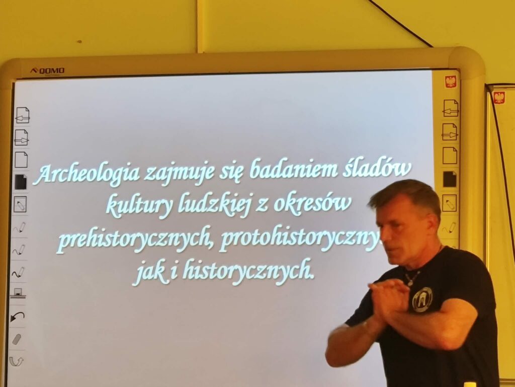Zaproszony gość opowiadał o swojej codziennej działalności, przybliżając nam, jak wygląda praca archeologa „od kuchni”. Dowiedzieliśmy się, jak przygotowuje się do wykopalisk, jakich narzędzi używa oraz z jakimi trudnościami musi się mierzyć w terenie. Szczególnie interesujące były historie związane z konkretnymi stanowiskami archeologicznymi, nad którymi pracował – opowiadał o odkryciach, które miały duże znaczenie historyczne, ale też o tych mniejszych, które często wymagają żmudnej analizy.