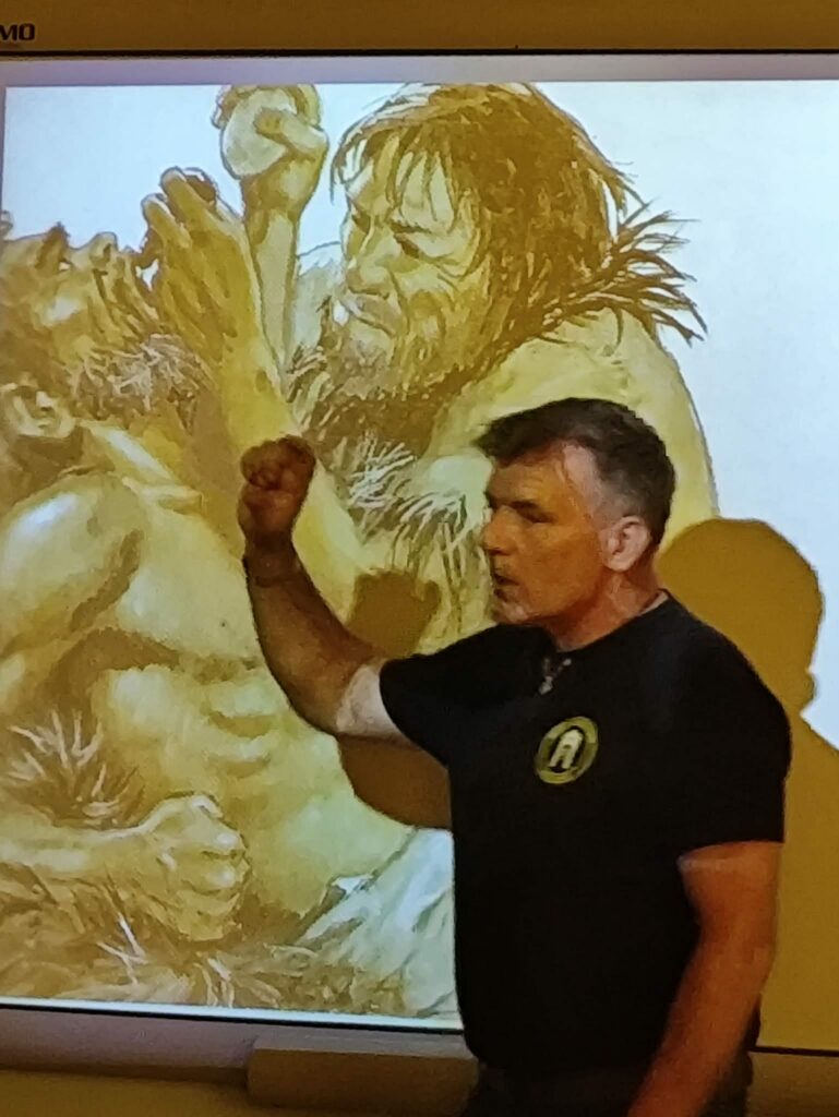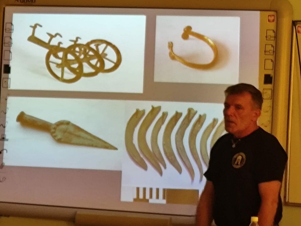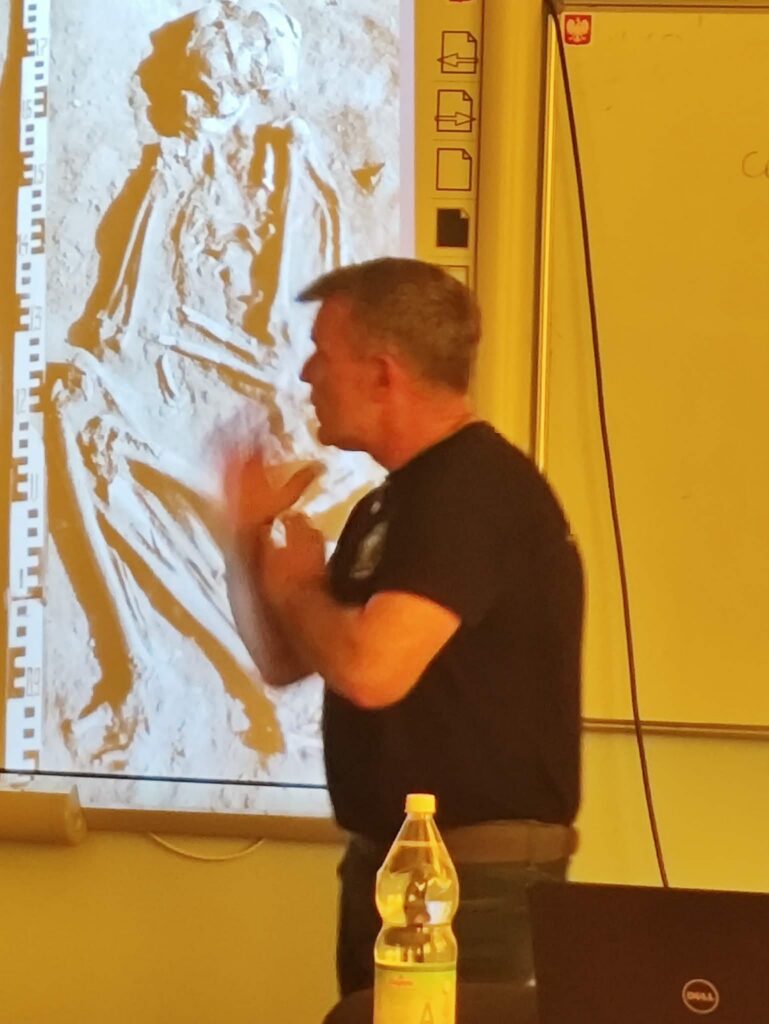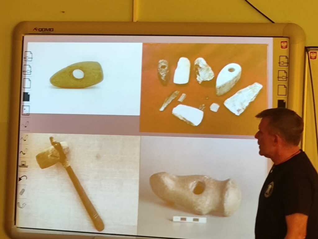 Spotkanie miało również charakter interaktywny – mogliśmy zadawać pytania, na które prowadzący chętnie odpowiadał, dzieląc się swoimi doświadczeniami i ciekawostkami z pracy. Na zakończenie wielu z nas było pod wrażeniem nie tylko samej archeologii, ale także pasji, z jaką Dariusz Greń opowiadał o swoim zawodzie.
