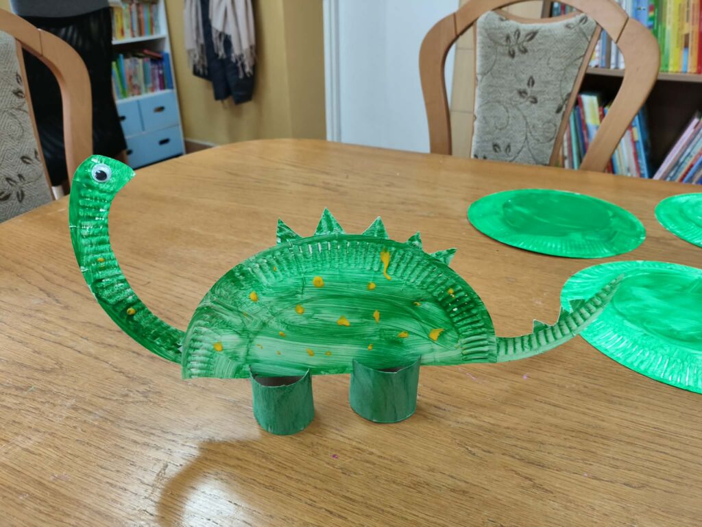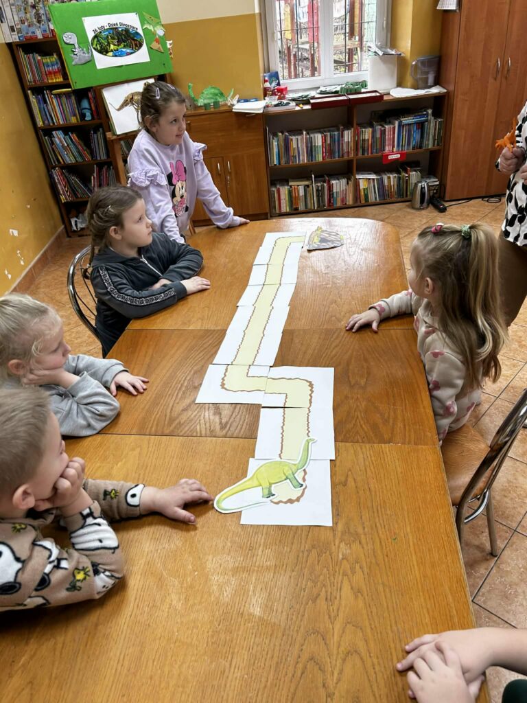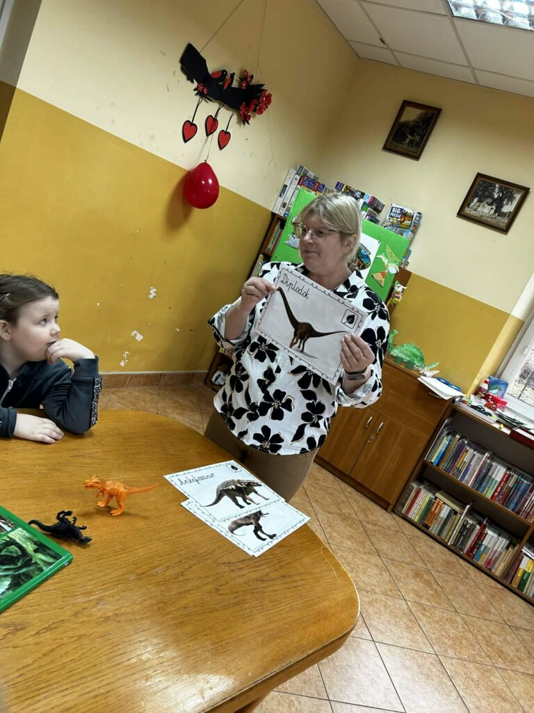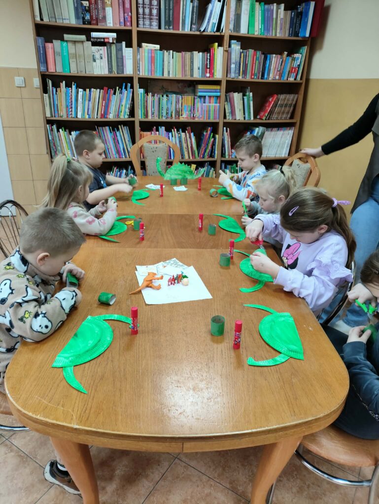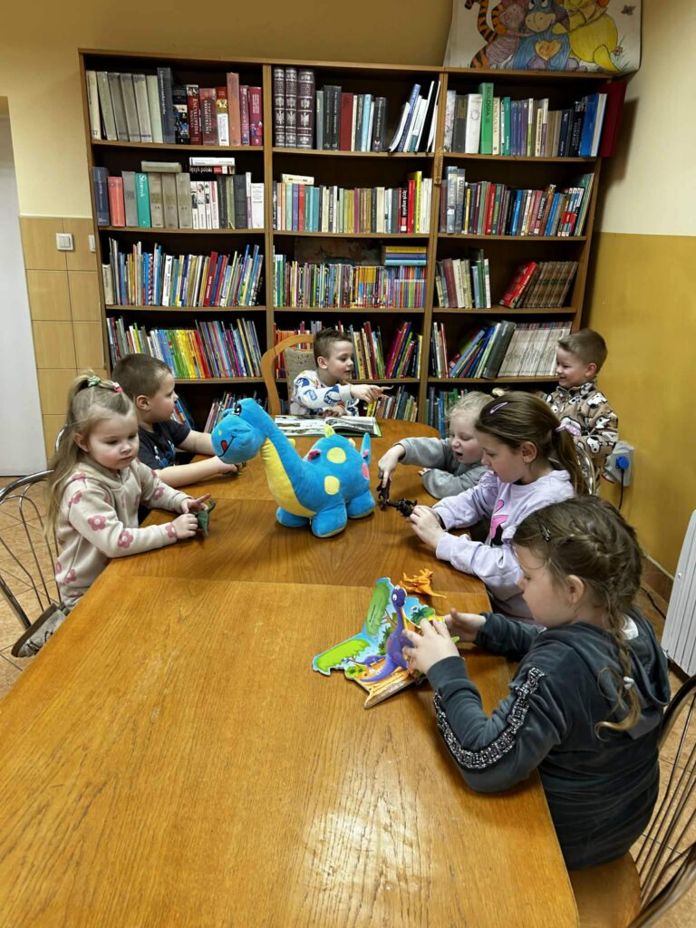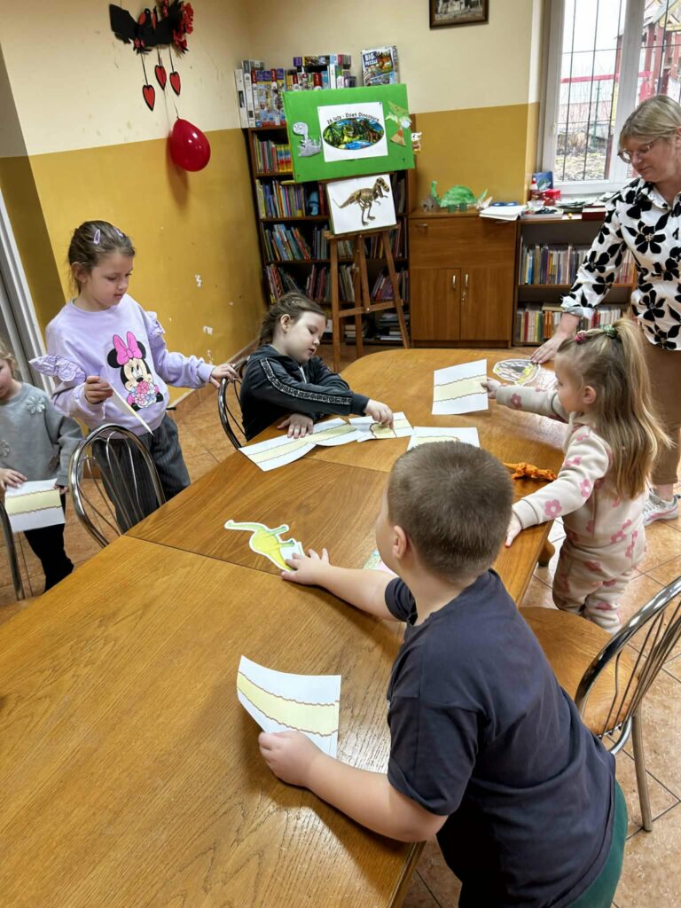 Z okazji Dnia Dinozaura filia biblioteczna zamieniła się w prawdziwy park jurajski. Wśród książkowych półek pojawiły się sylwetki prehistorycznych gadów,a na najmłodszych czytelników czekało wiele atrakcji związanych z tym niezwykłym świętem.Spotkanie rozpoczęło się od rozmowy o dinozaurach. Dzieci opowiadały o swoich ulubionych gatunkach i z zaciekawieniem słuchały ciekawostek dotyczących ich życia.
