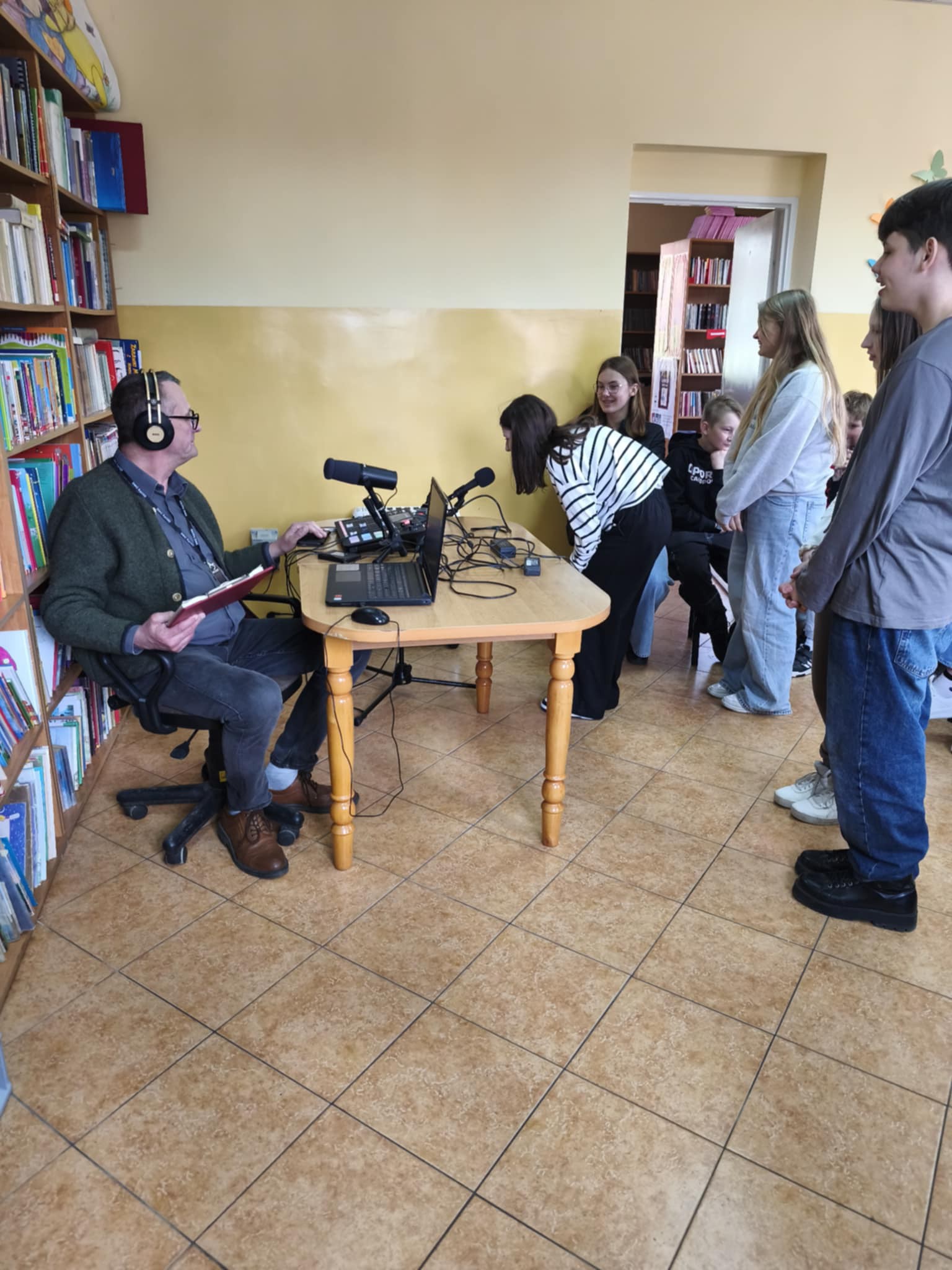 Spotkanie z radiowcem było nie tylko ciekawą lekcją o pracy w mediach, ale również szansą na zobaczenie, jak wygląda nagrywanie audycji radiowej na żywo.