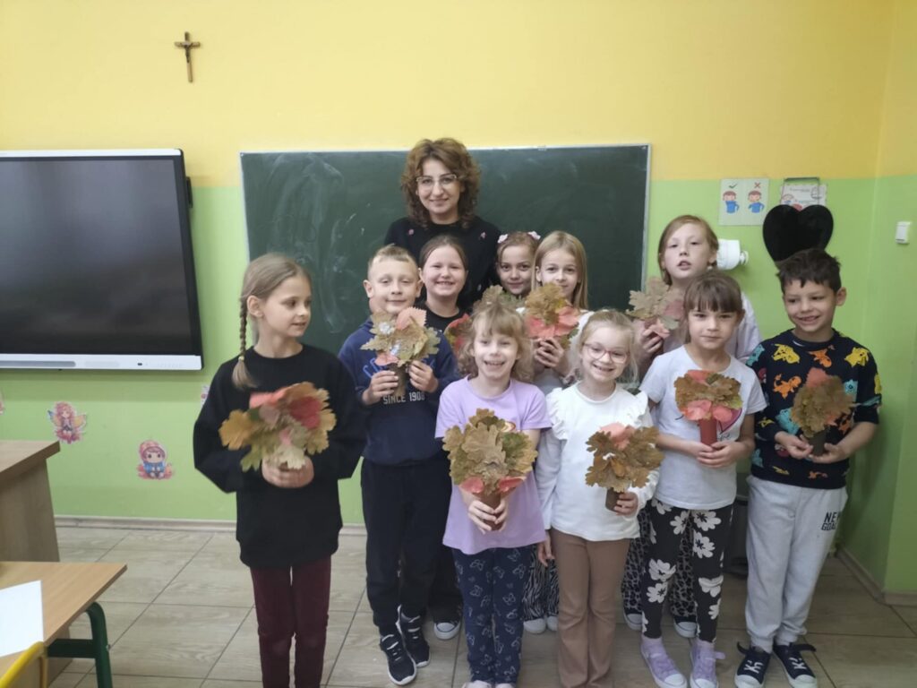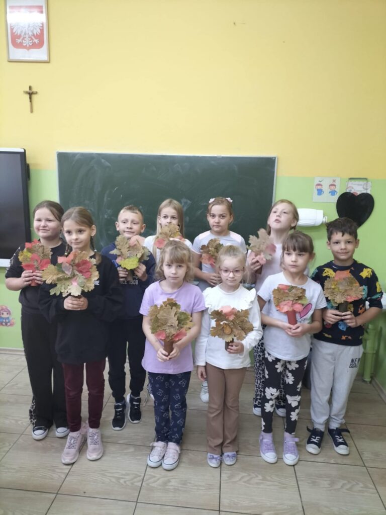 Efektem była kolorowa galeria jesiennych drzew, która wprowadziła do sali ciepłą, jesienną atmosferę