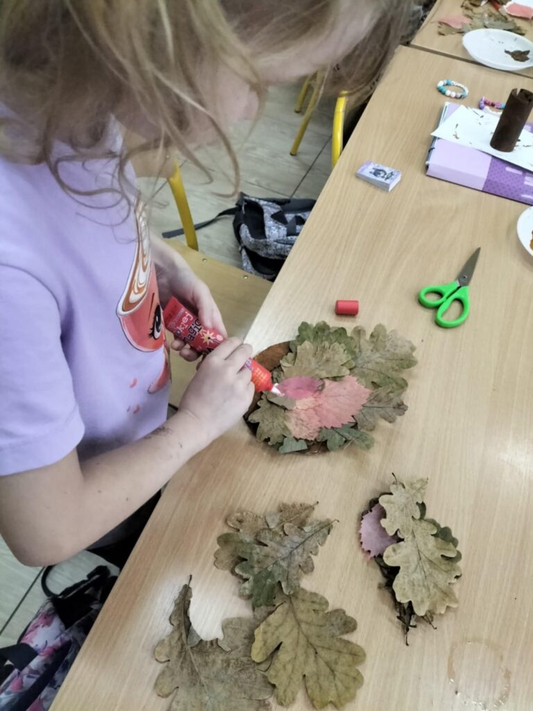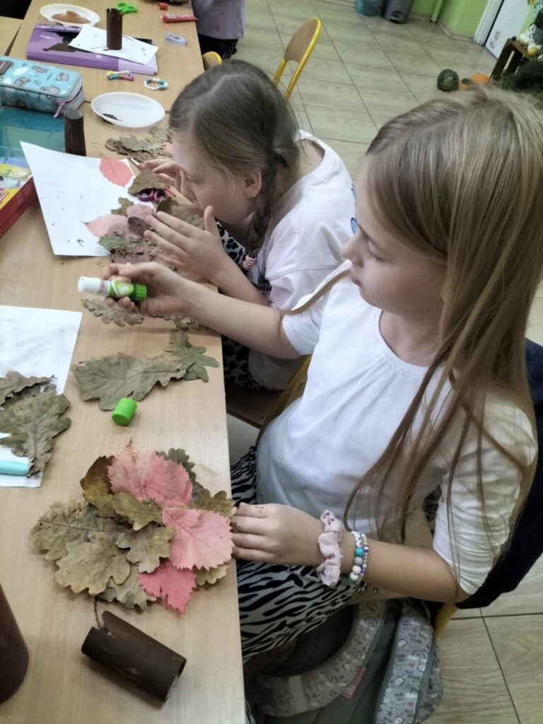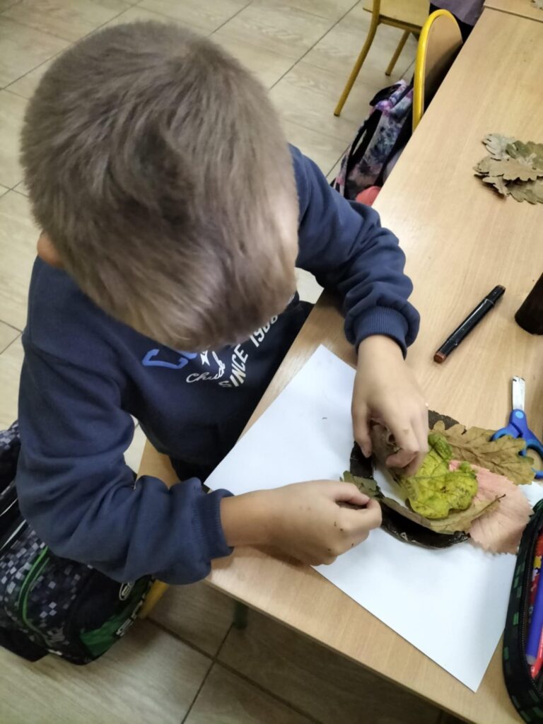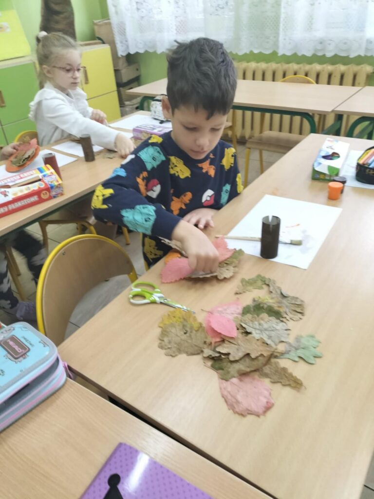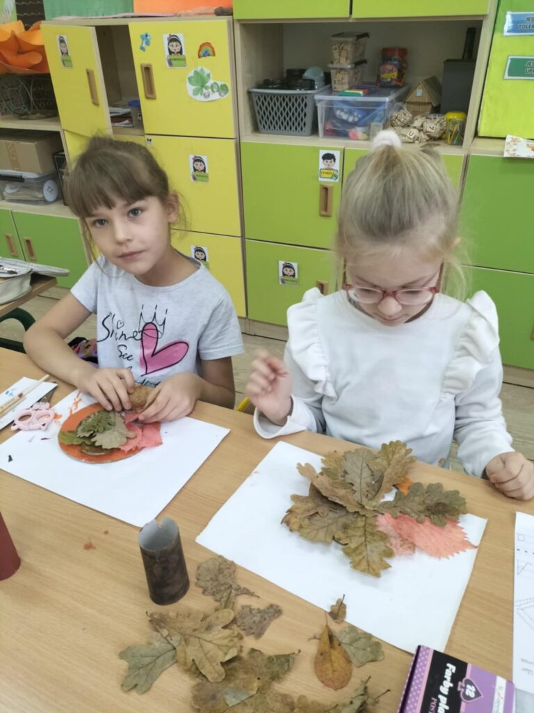 Zajęcia rozwijały sprawność manualną , wyobraźnię , poczucie estetyki i wrażliwość na piękno przyrody. Dzieci miały też okazję doświadczyć różnorodnych faktur – gładkiej rolki, szorstkich liści czy sztywnej tektury.