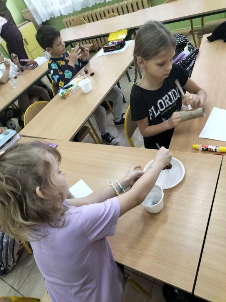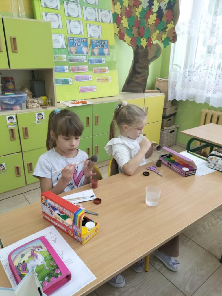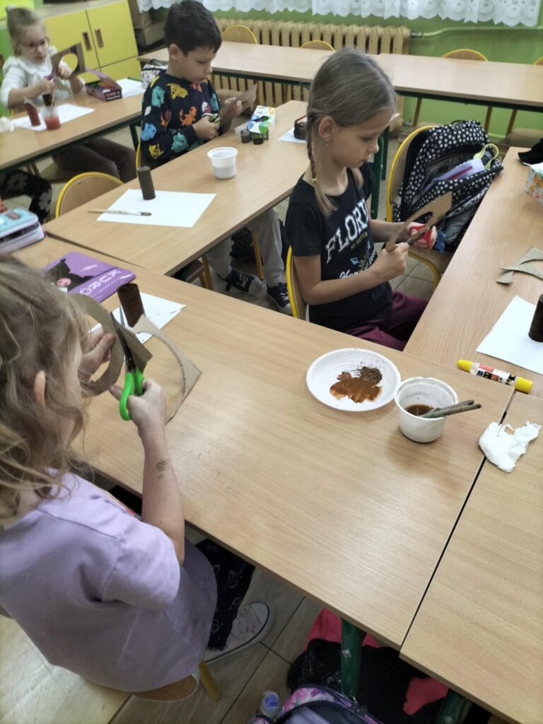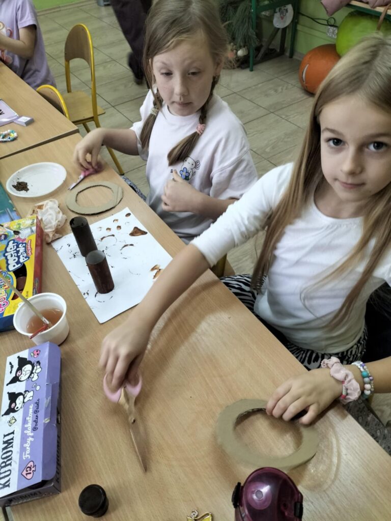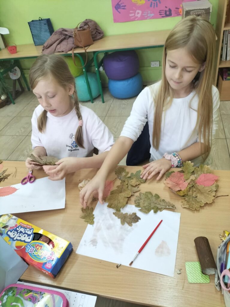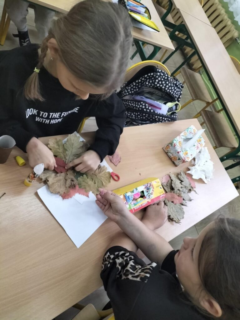 Zajęcia rozwijały sprawność manualną , wyobraźnię , poczucie estetyki i wrażliwość na piękno przyrody. Dzieci miały też okazję doświadczyć różnorodnych faktur – gładkiej rolki, szorstkich liści czy sztywnej tektury.