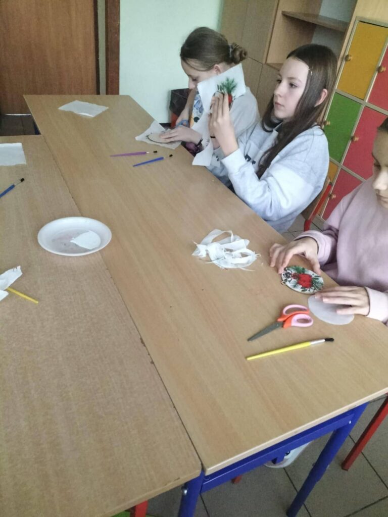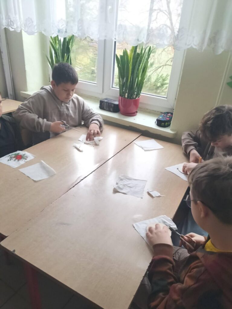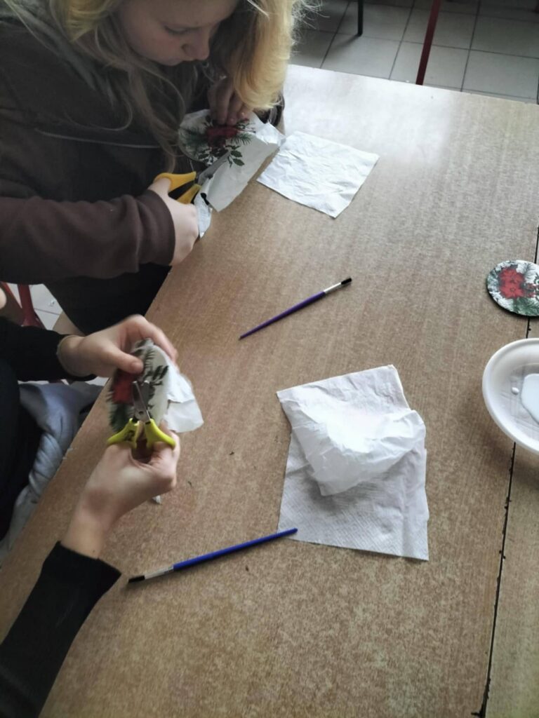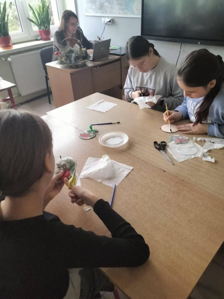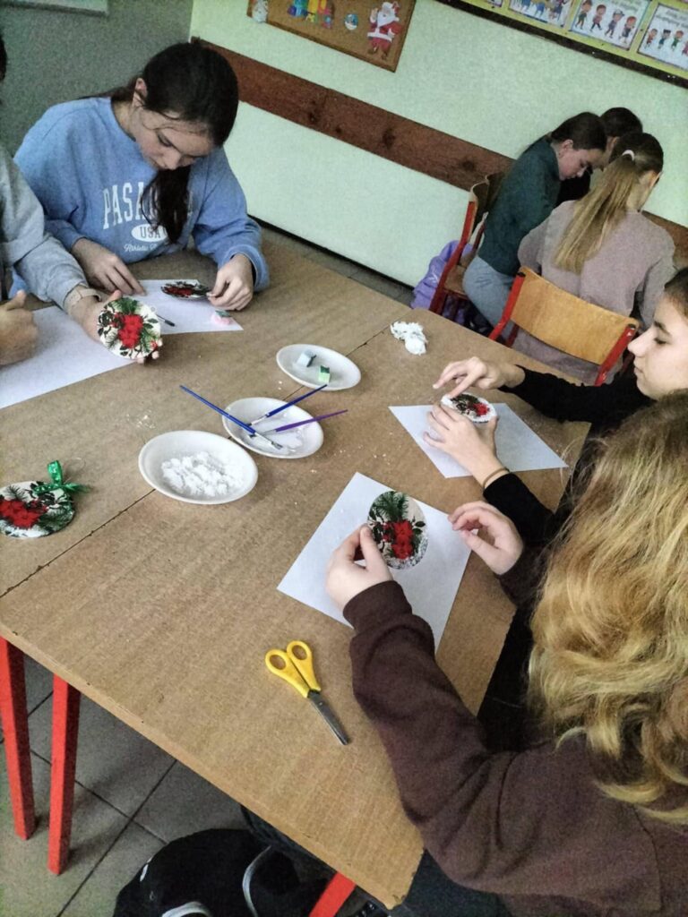 W ZPO w Michałowie odbyło się twórcze spotkanie z uczniami klasy 5, podczas którego uczestnicy poznali technikę dekorowania ozdób świątecznych metodą decoupage. Każdy z uczniów otrzymał drewnianą sklejkę w kształcie bombki, którą następnie ozdabiał motywem z gwiazdą betlejemska . Młodzi artyści korzystali również z białej farby oraz sztucznego śniegu, aby nadać swoim pracom zimowego, świątecznego charakteru.