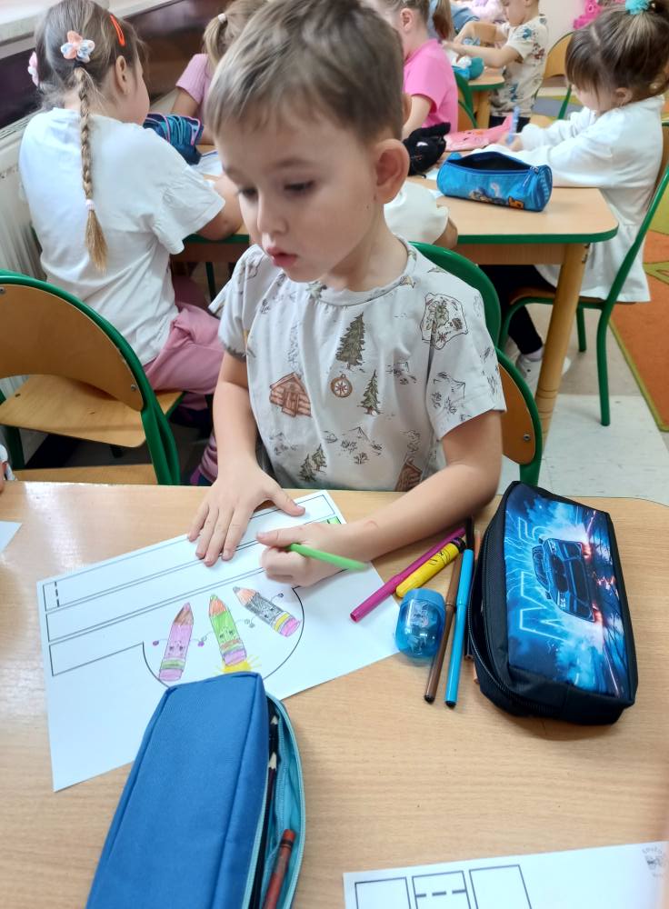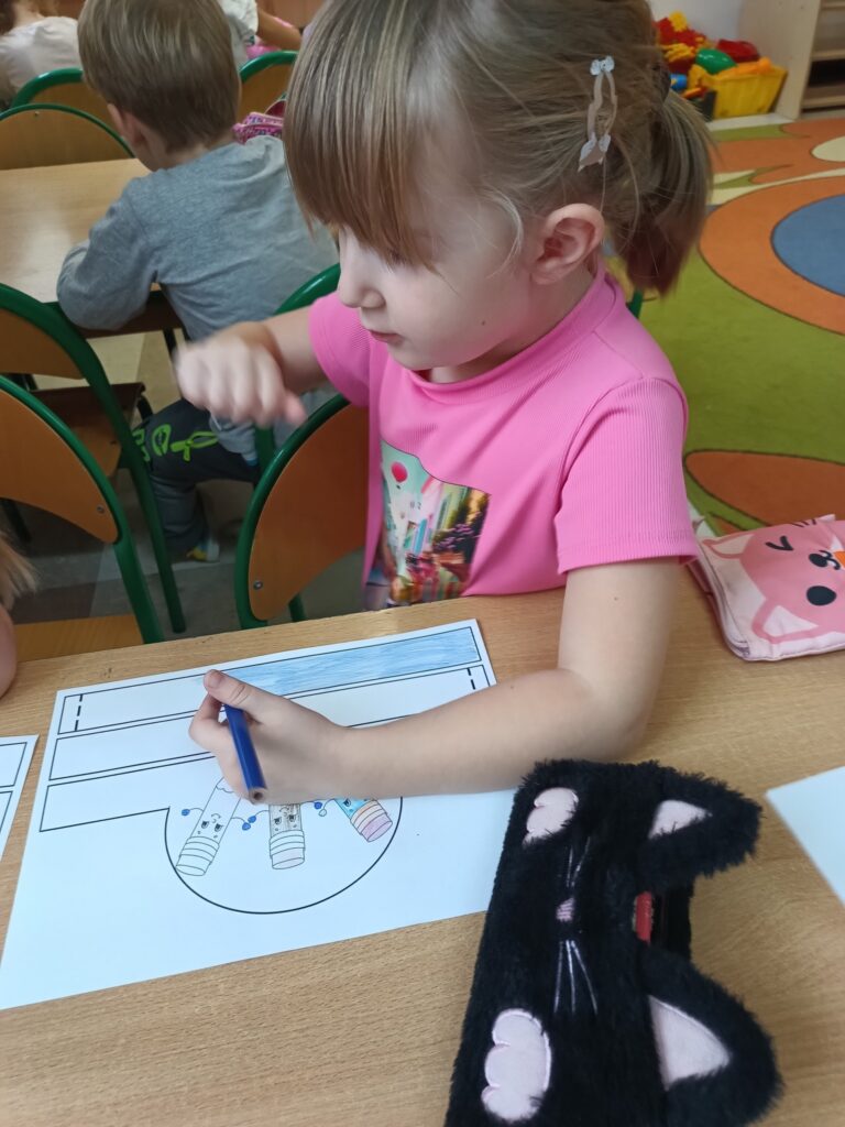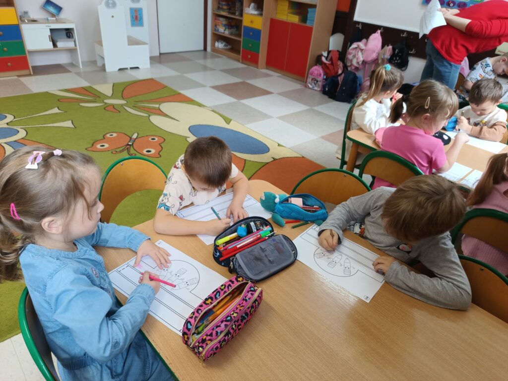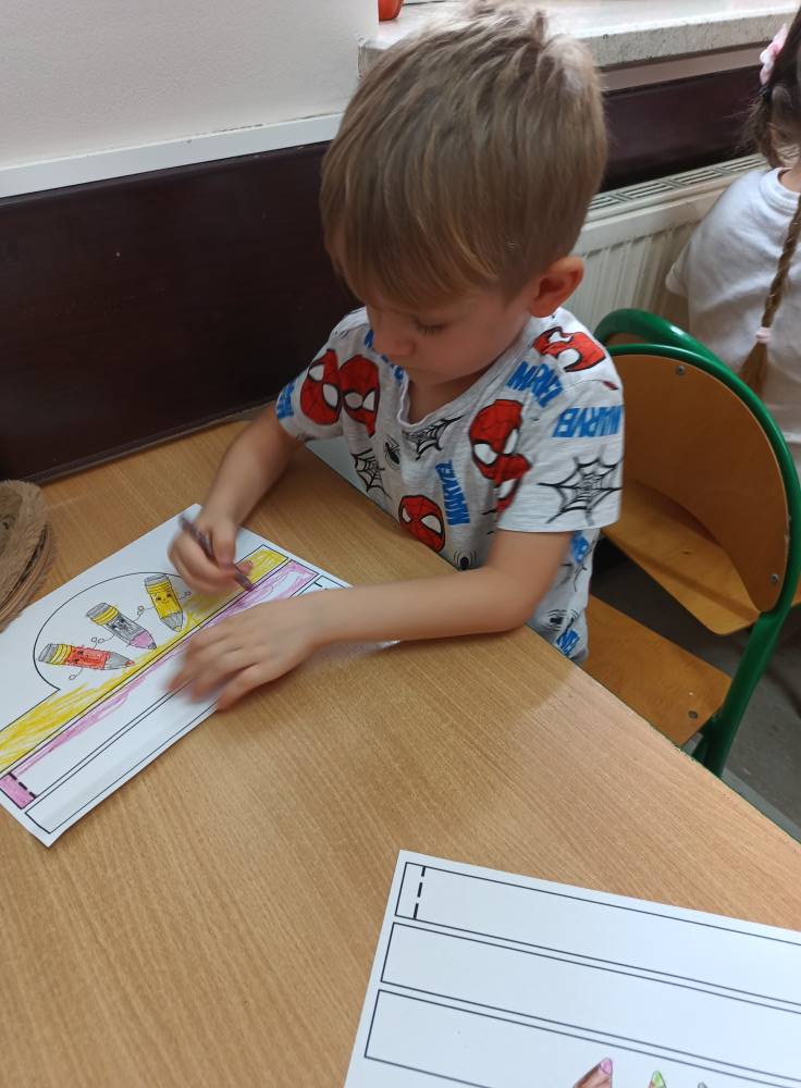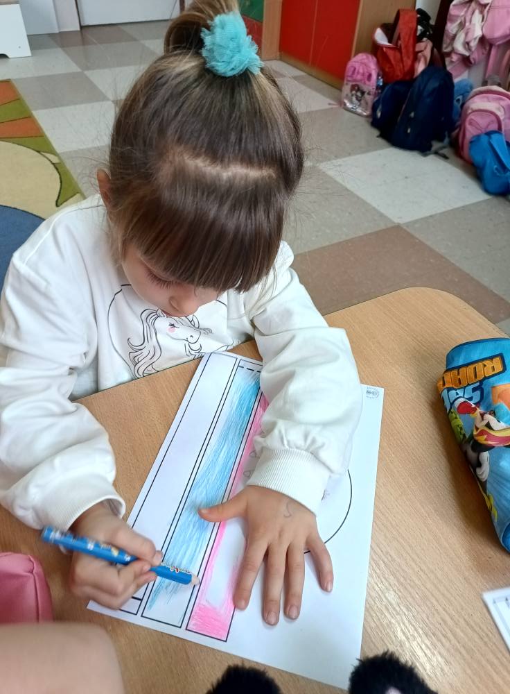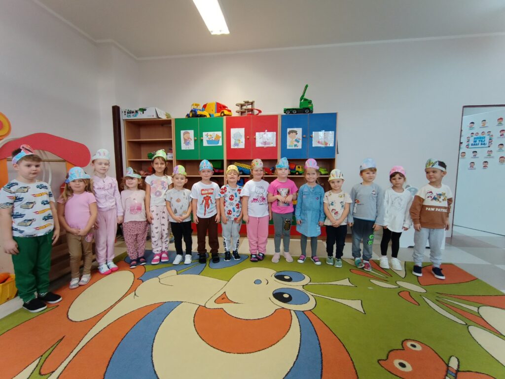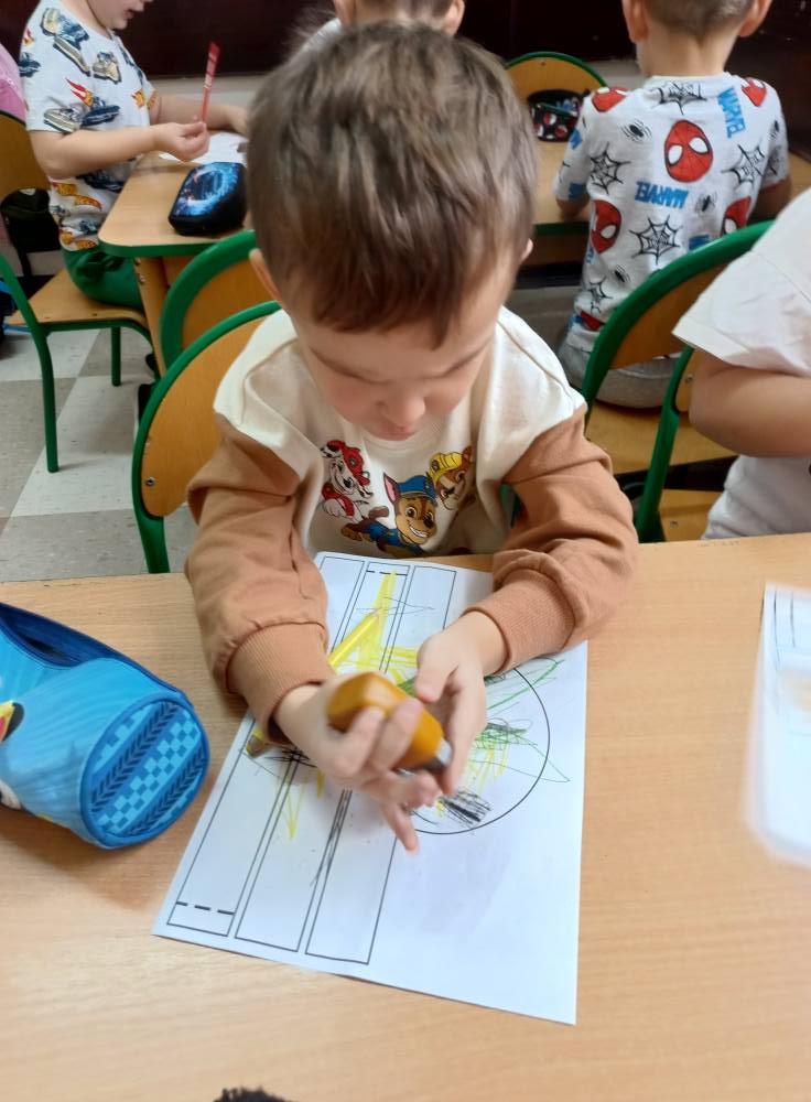 Przedszkolaki wykonały pracę plastyczną – pokolorowały i wycięły własne opaski na głowę na Dzień Kredki.