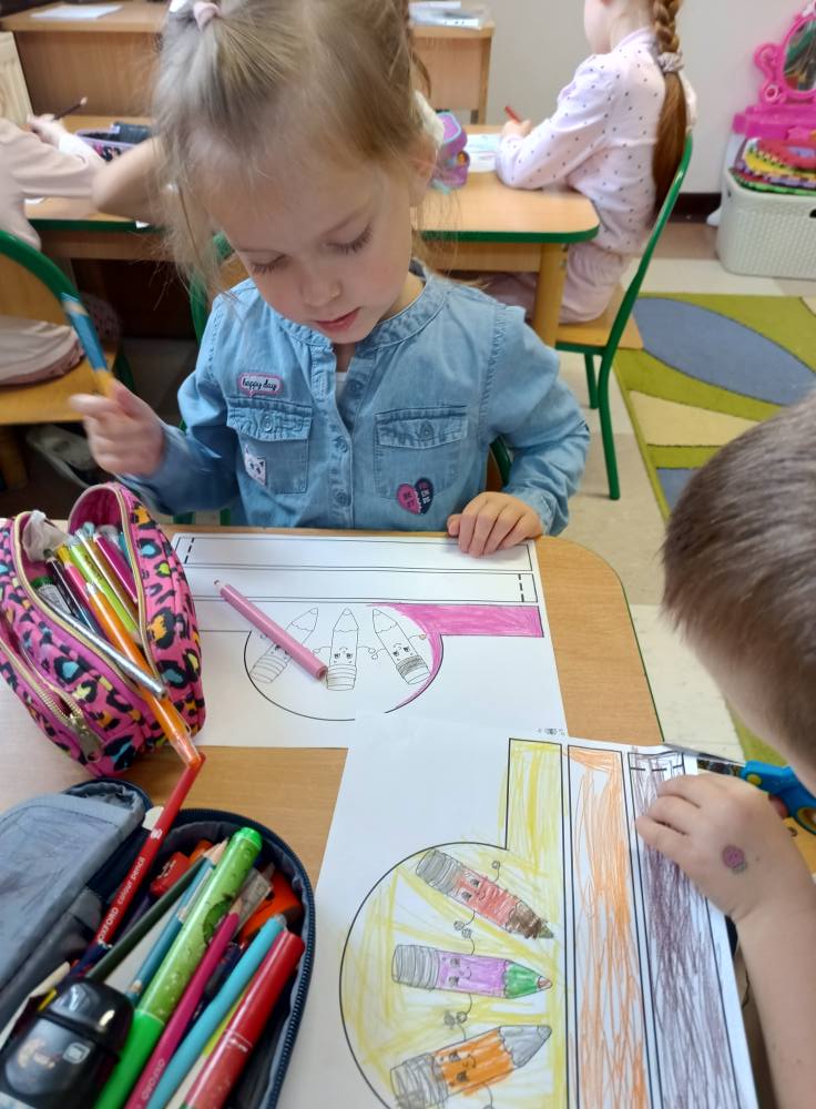 W przedszkolach i szkołach organizuje się wtedy zabawy, konkursy oraz zajęcia artystyczne związane z rysowaniem i kolorowaniem. W dniu wczorajszym odwiedziłam 5 latków z przedszkola w Michałowie. Dzieci wysłuchały opowiadania o kredkach, które malowały różne obrazki, na końcu malowały tęczę -a że nie mogły się dogadać to tęcza była w kropki, ciapki i zygzaki.
