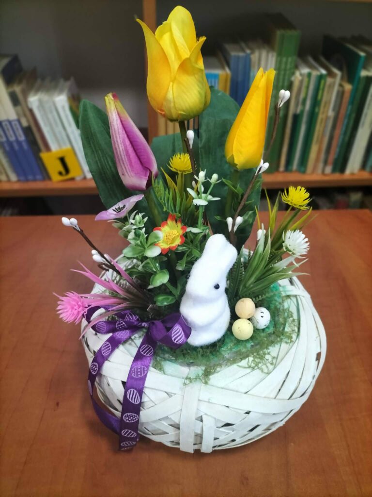 Efektem spotkania były piękne, kolorowe kompozycje wielkanocne, które uczestnicy zabrali do swoich domów jako wyjątkową, własnoręcznie wykonaną dekorację. Wydarzenie pokazało, jak ważną rolę pełni biblioteka jako miejsce spotkań, integracji i wspólnego tworzenia. Dziękujemy wszystkim za udział i wspólnie spędzony czas.