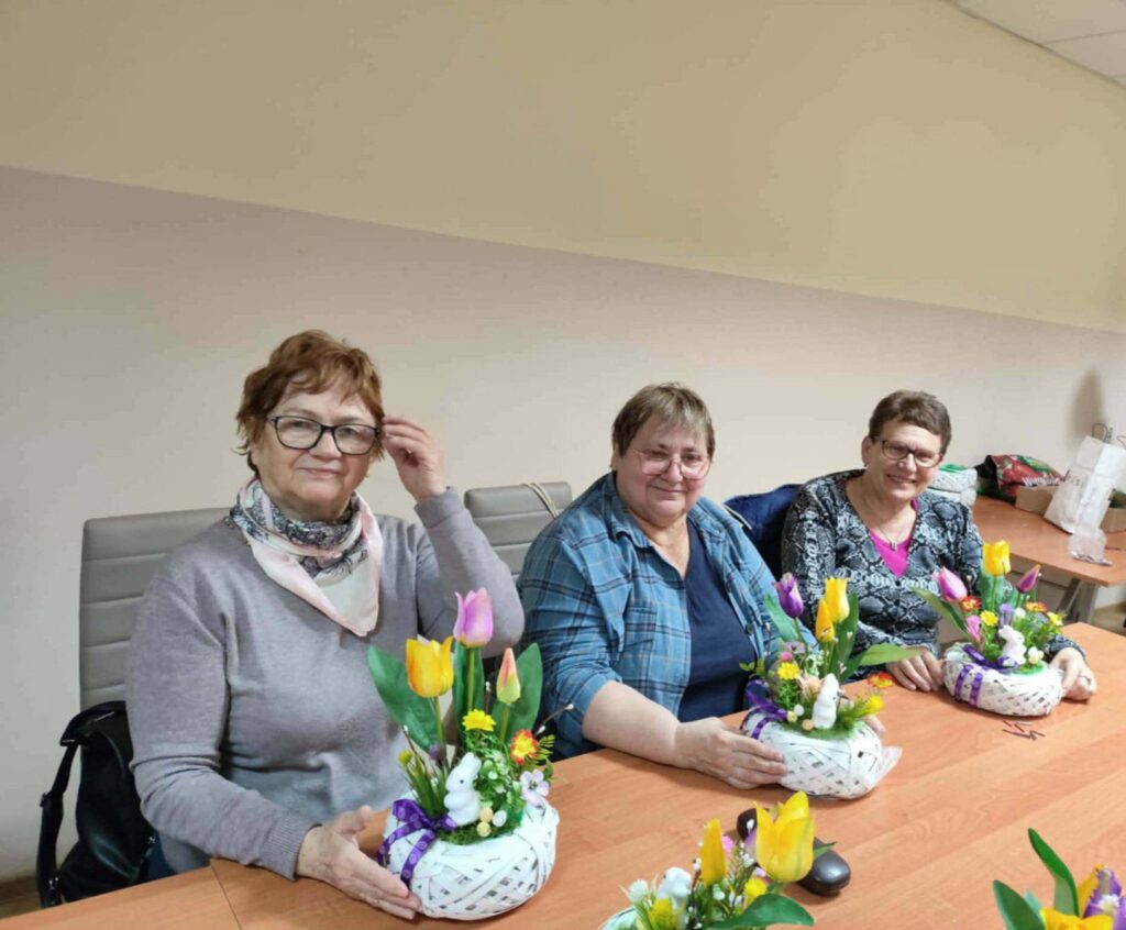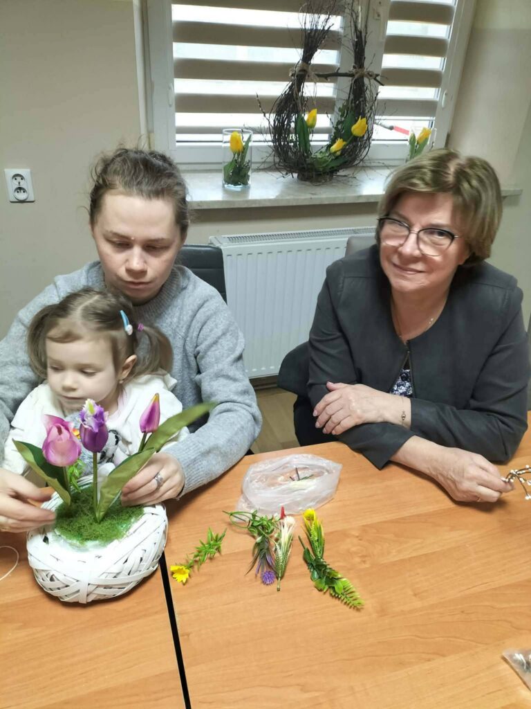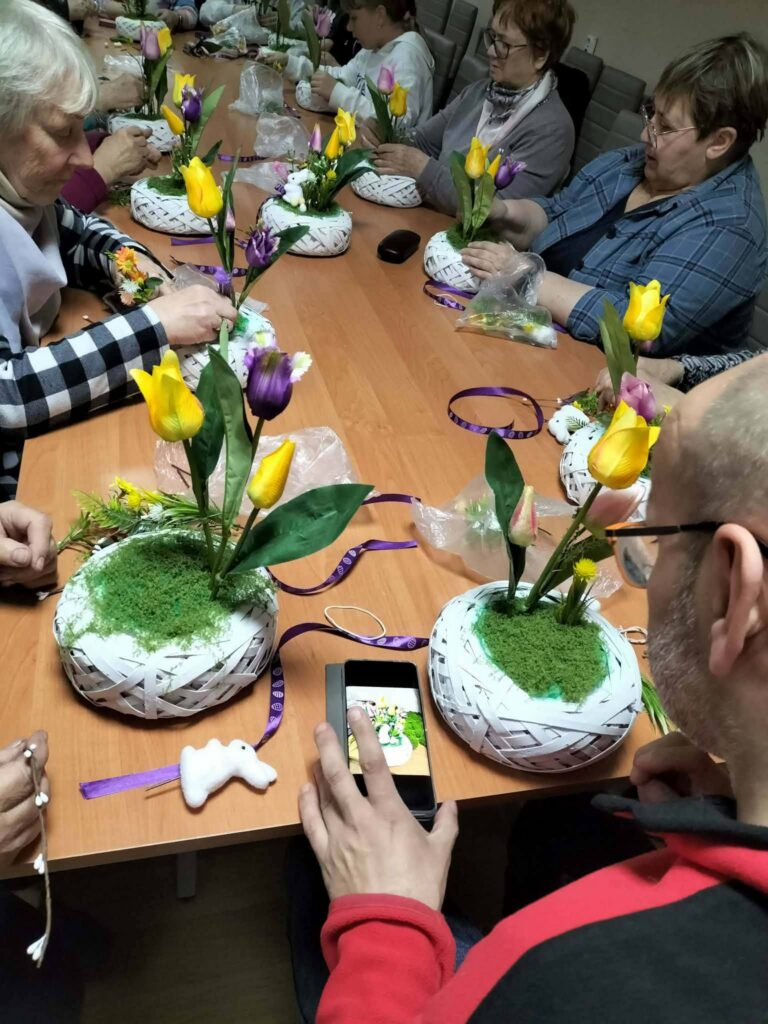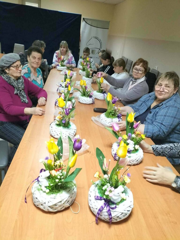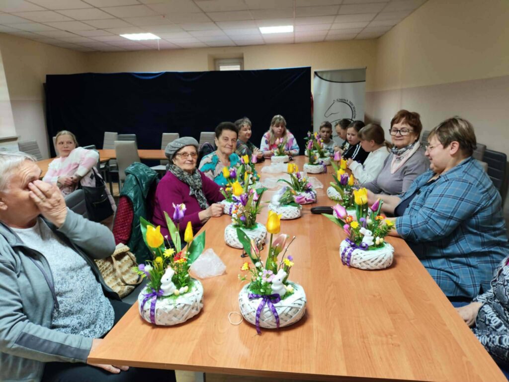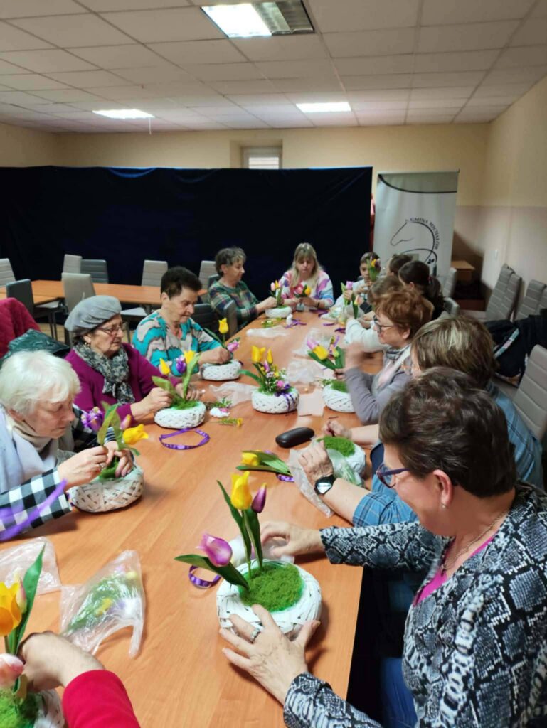 Podczas zajęć panowała radosna, swobodna atmosfera. Uczestnicy chętnie wymieniali się pomysłami, pomagali sobie nawzajem i dzielili doświadczeniem. Warsztaty były nie tylko okazją do rozwijania zdolności manualnych, ale także do wspólnego spędzenia czasu i budowania relacji międzypokoleniowych.
