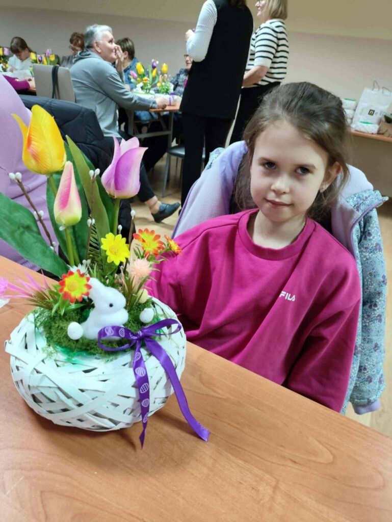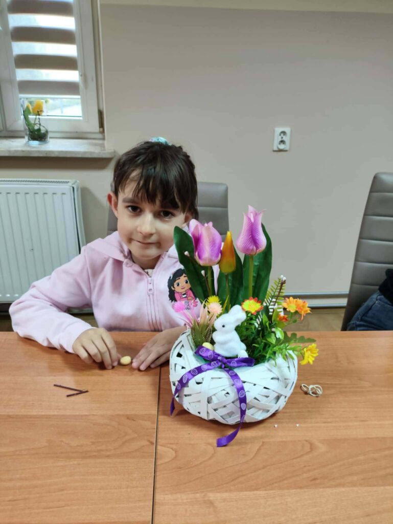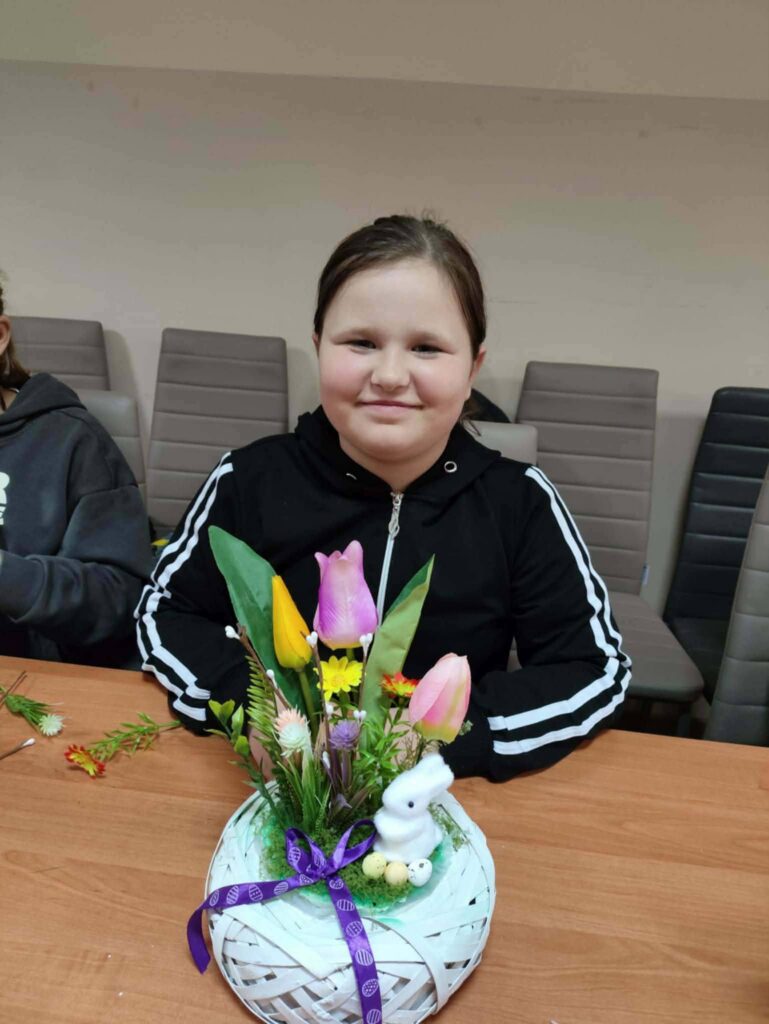 Uczestnicy stanęli przed zadaniem przygotowania własnej kompozycji świątecznej w białym, ratanowym koszyczku. Każdy otrzymał zestaw materiałów, w skład którego wchodziły: koszyczek, dekoracyjny mech, tulipany, zajączek, kolorowe kwiatuszki, wstążka oraz jajka. Dzięki temu każdy mógł stworzyć unikalną ozdobę, dopasowaną do własnego gustu i pomysłowości.