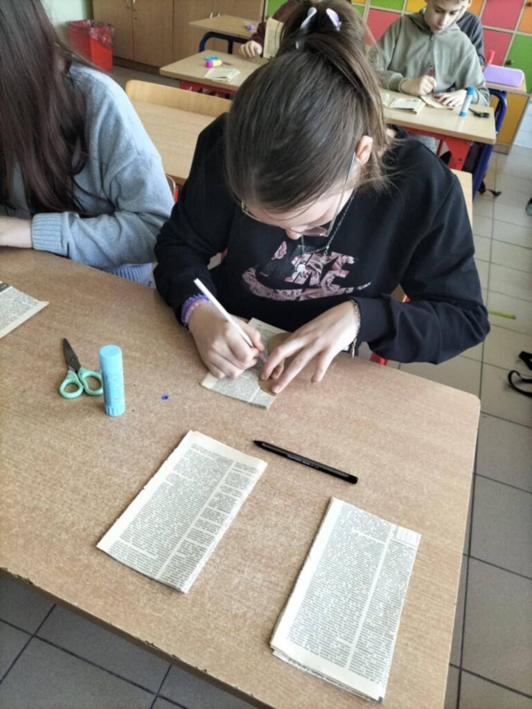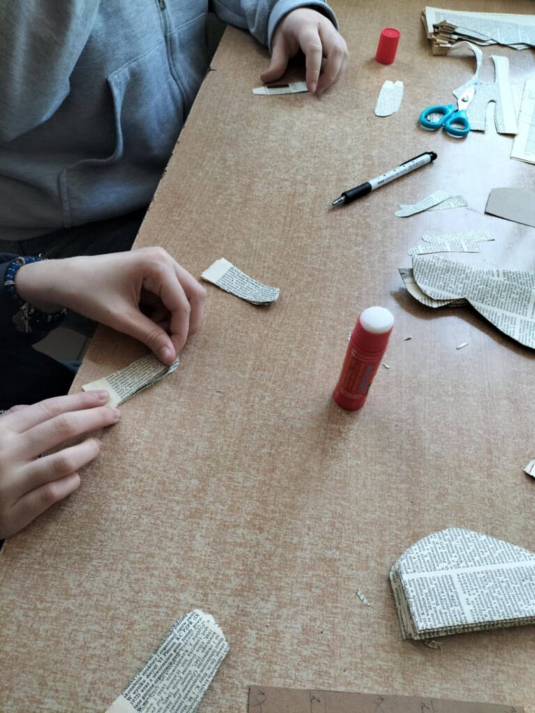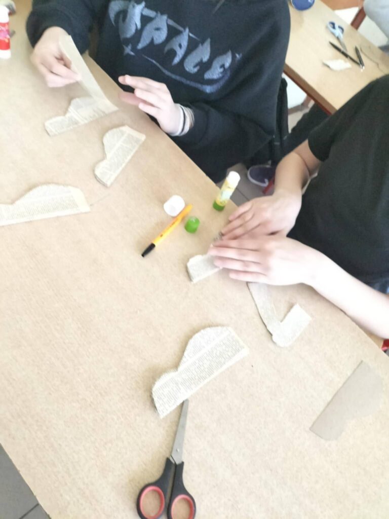 Podczas warsztatów uczniowie doskonalili umiejętność wycinania, składania oraz przede wszystkim klejenia, opanowując tę technikę w praktyce. Dzięki wspólnej pracy rozwijali także zdolności manualne oraz współpracę w grupie.