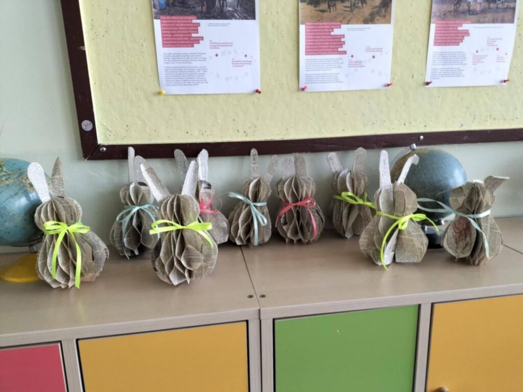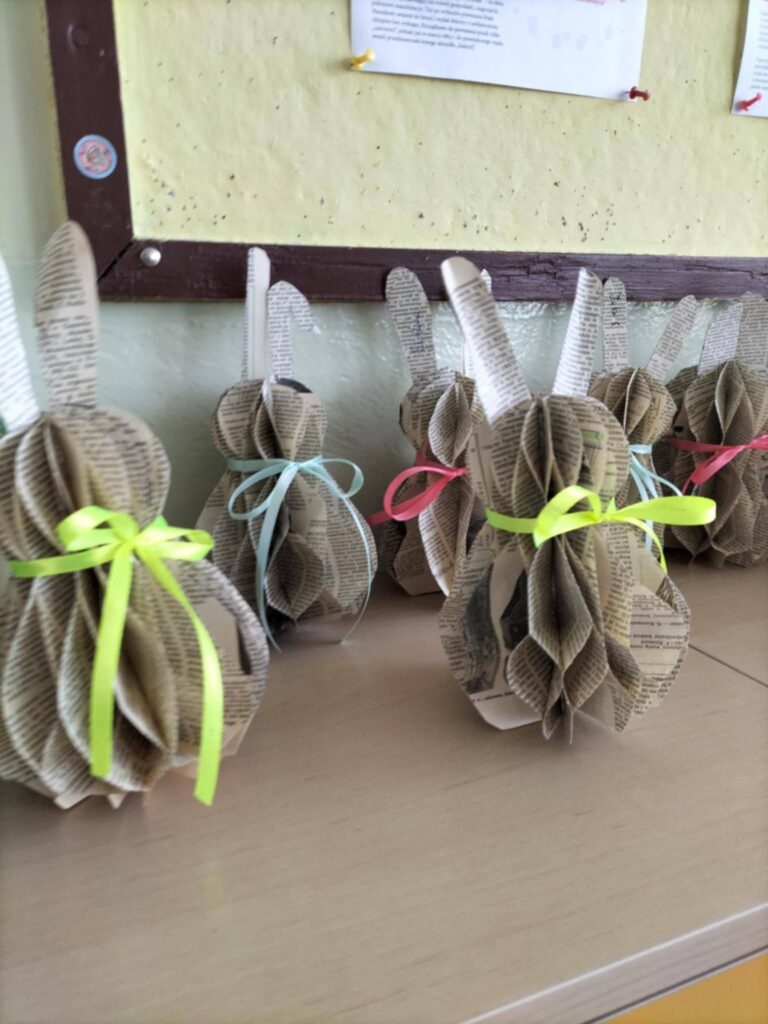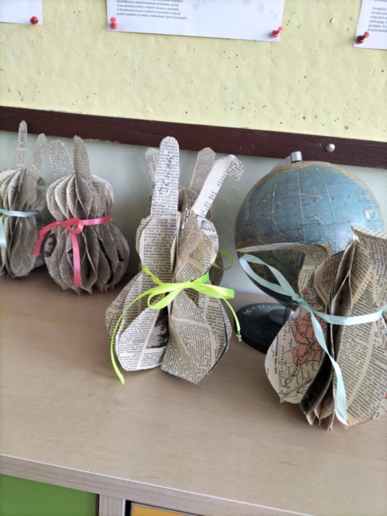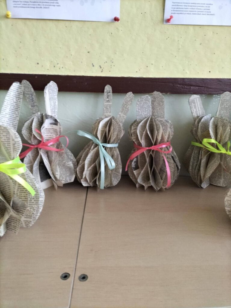 Efektem zajęć były piękne zające z kolorowymi kokardkami, które wprowadziły wszystkich w świąteczny nastrój i stały się wyjątkową ozdobą klasy.