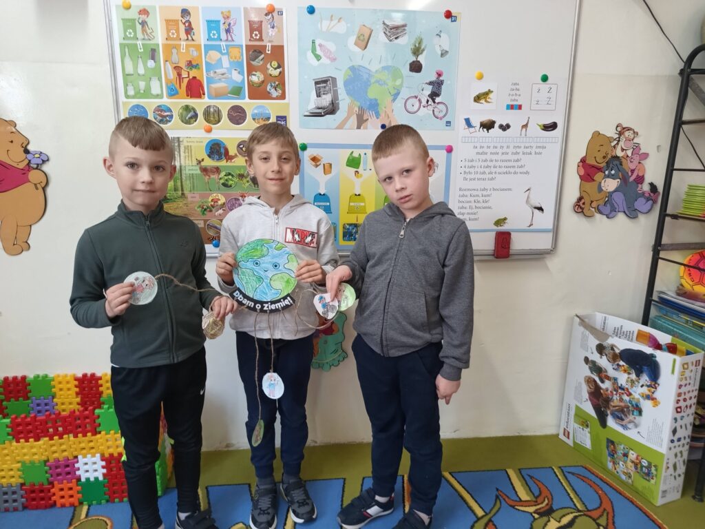 Po części literackiej przedszkolaki wspólnie wykonały pracę plastyczną pod hasłem „Dbam o Ziemię”. Na dużej ilustracji przedstawiającej planetę dzieci umieszczały elementy symbolizujące ekologiczne zachowania, takie jak sadzenie drzew, oszczędzanie wody, jazda na rowerze czy sprzątanie świata. Wspólna praca była okazją do integracji grupy oraz utrwalenia zdobytej wiedzy.