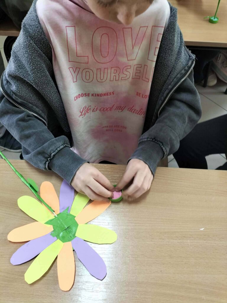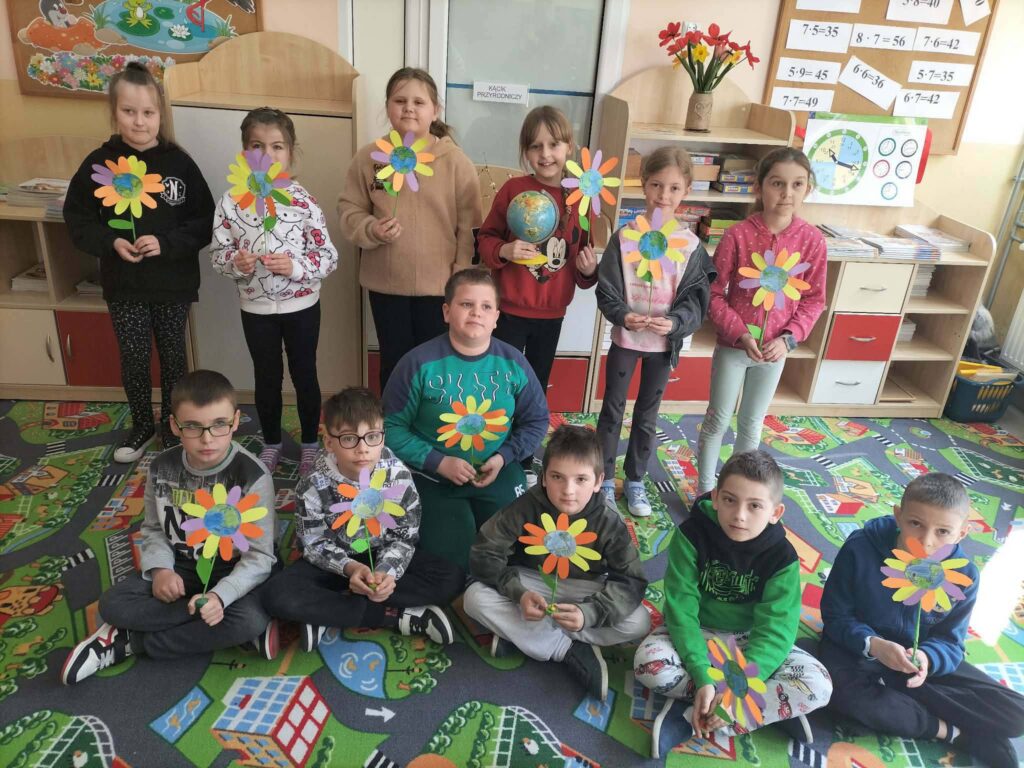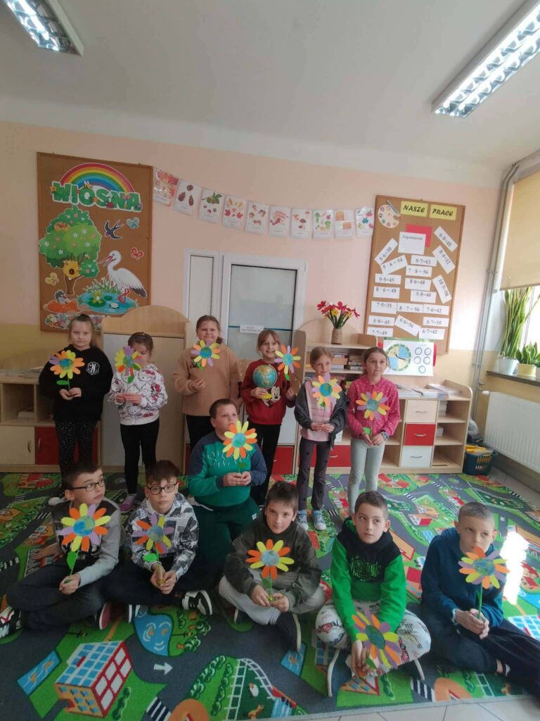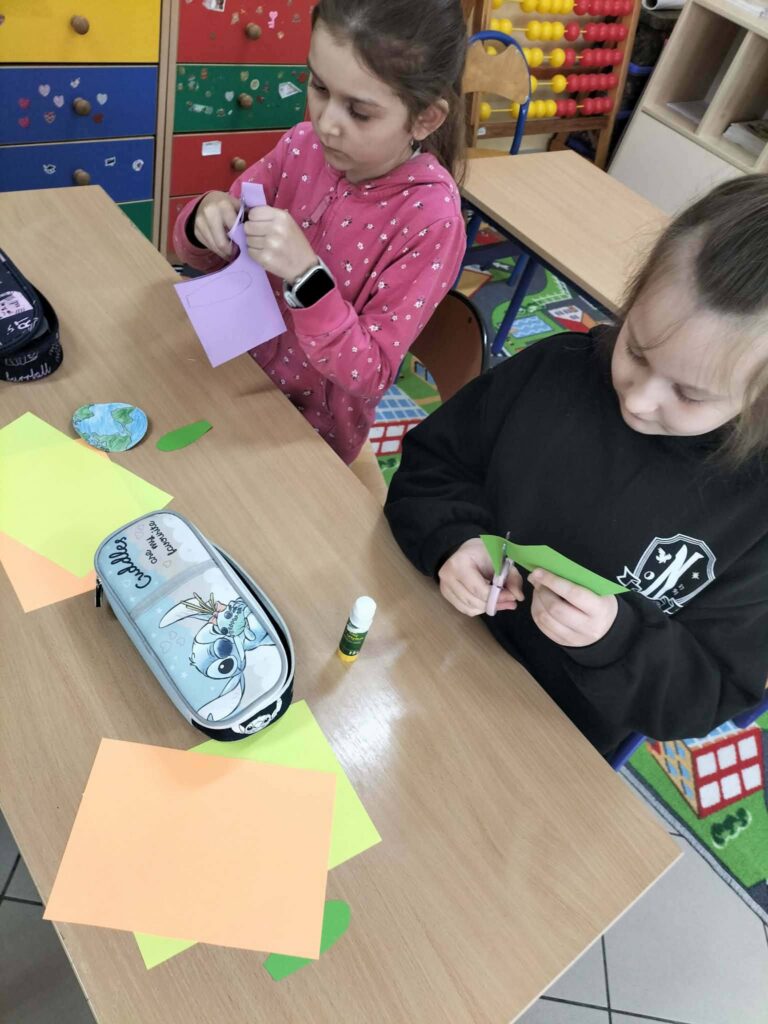 Zajęcia przebiegły w miłej i twórczej atmosferze. Uczniowie chętnie uczestniczyli w dyskusji oraz z dużym entuzjazmem wykonywali swoje prace. Gotowe kwiaty stały się nie tylko piękną dekoracją, ale również symbolem troski o Ziemię i przypomnieniem, że każdy z nas ma wpływ na jej przyszłość.